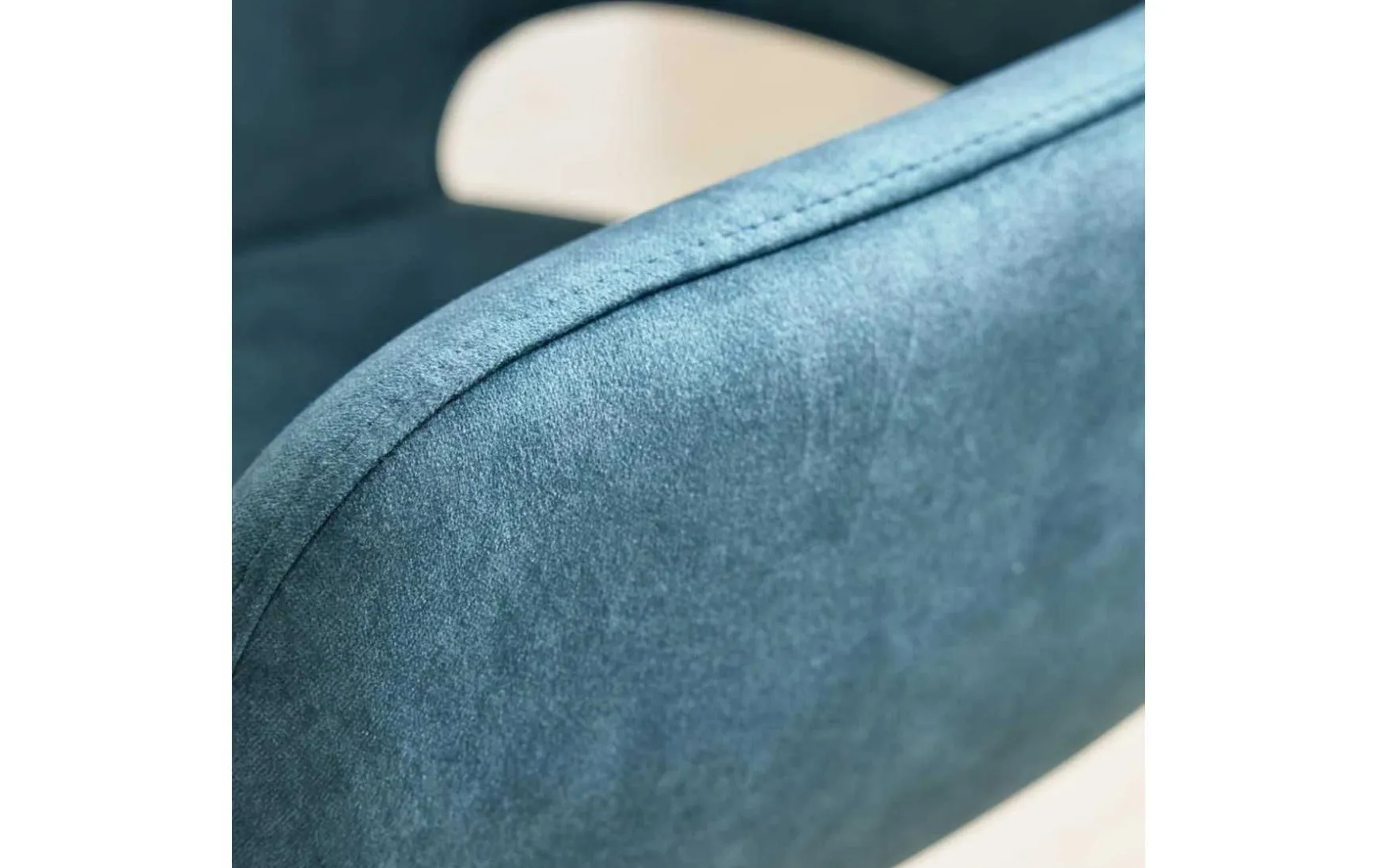 Der Sessel ist mit einem Stoffbezug in Dubai Petrol bezogen. Ein anthrazitfarbenes Metallgestell verleiht dem Sessel ausreichend Stabilität. Die komfortable Sitzschale mit Armlehnen ermöglicht einen besonders hohen Sitzkomfort.