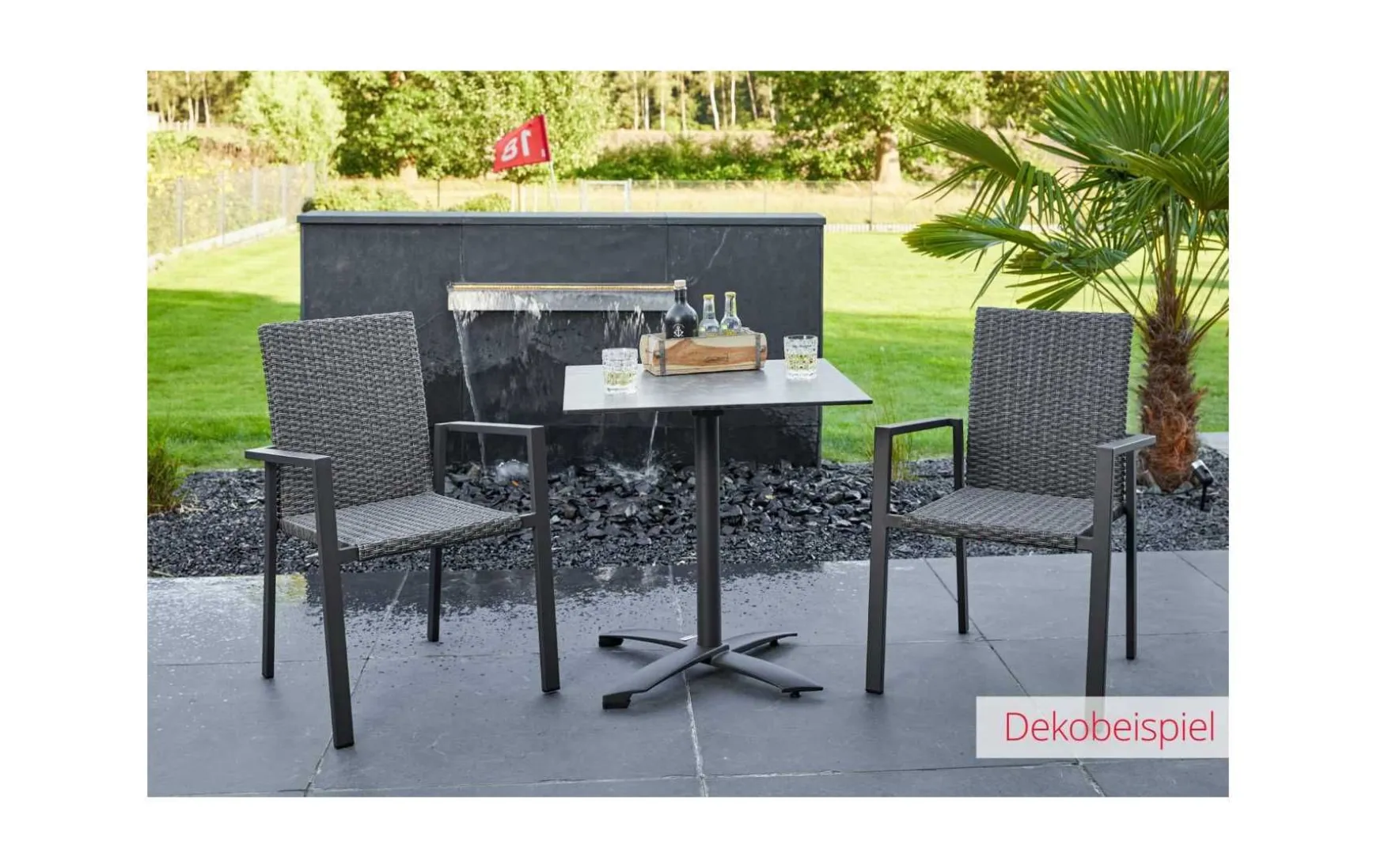 Dieser stapelbare Bistrostuhl, überzeugt als funktioneller Gartenstuhl. Dank Rücken- und Armlehnen bietet Ihnen der mit Polyrattan-Geflecht bezogene Sessel aus Aluminium höchsten Sitzkomfort. Der Gartenstuhl ist leicht, unempfindlich gegen Rost und langlebig. Bei Nichtnutzung ist er platzsparend zu verstauen.