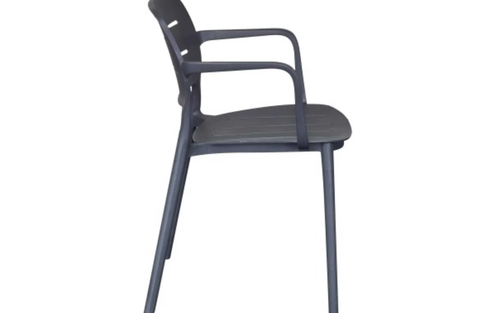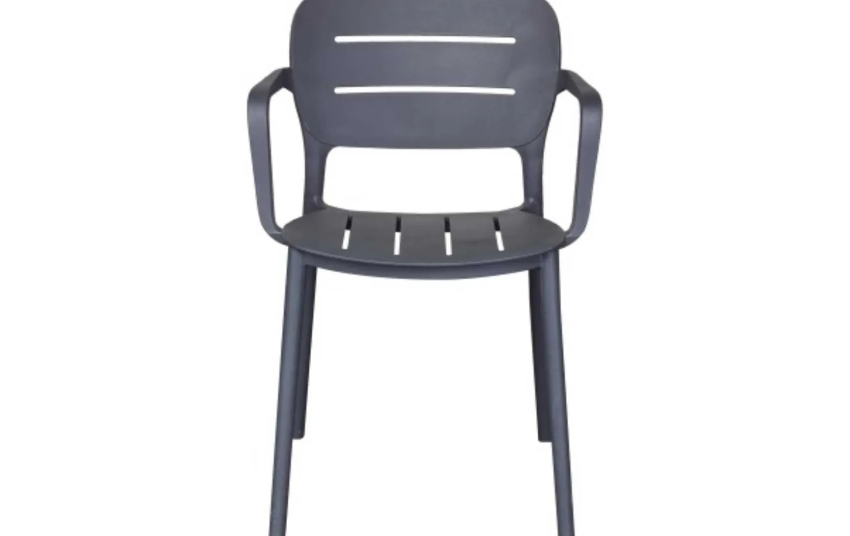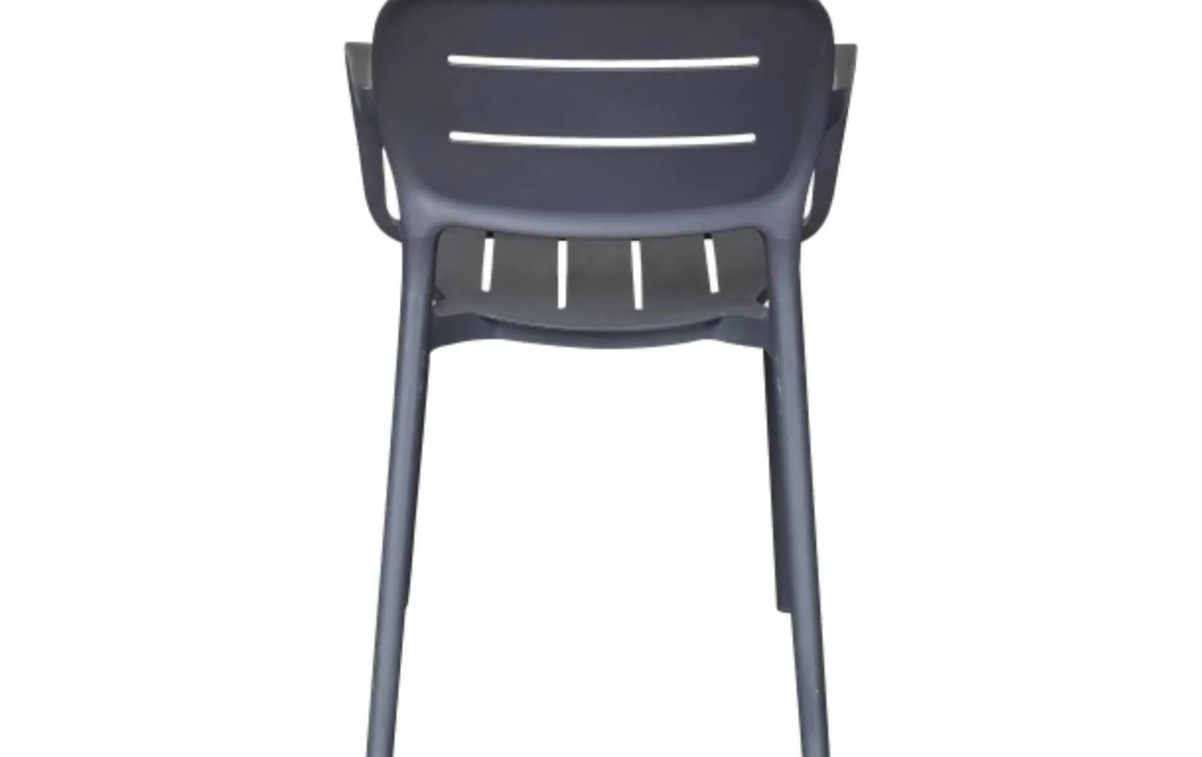 Der Stapelstuhl aus robustem Polypropylen in Anthrazit überzeugt mit seinem modernen Design, wetterfesten Material und stapelbarer Funktion, während er mit seinen Maßen von ca. 52,5 x 53 x 79 cm eine praktische und stilvolle Sitzlösung für Innen- und Außenbereiche bietet.
