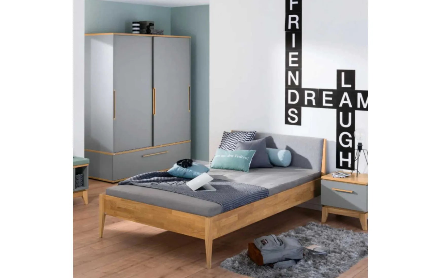 - Gegen Mehrpreis erhältlich: Nachtkästchen, Kleiderschrank, Wandbox