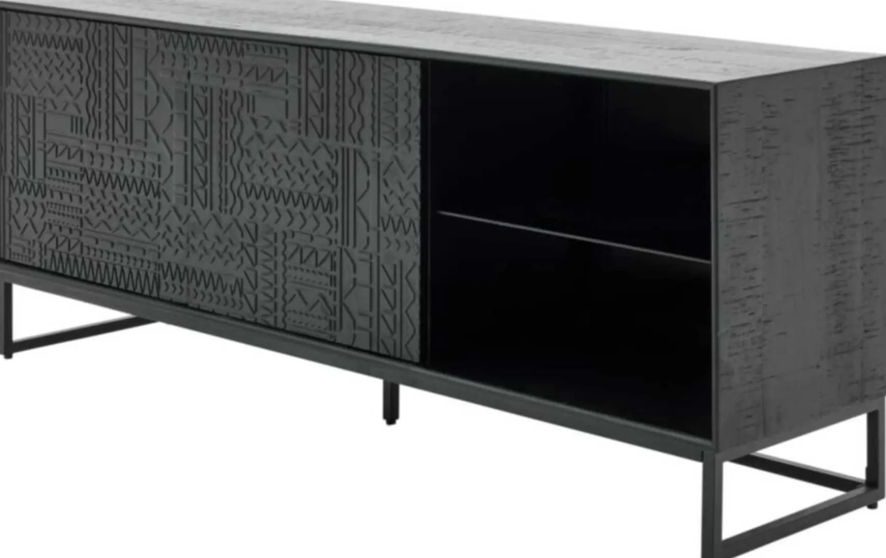 Das Lowboard in der Farbe Schwarz bringt Stil in dein Heim. Besonders das Design des Lowboards aus Mango massiv mit den Abmessungen von ca. 160 x 63 x 42 cm (B x H x T) ist eine großartige Ergänzung für dein Interieur. Durch das stilvolle Design schwarz lackierten Füßen aus Metall ist dieses Lowboard ein richtiger Hingucker, der jedem Raum ein gemütliches Ambiente verleiht.