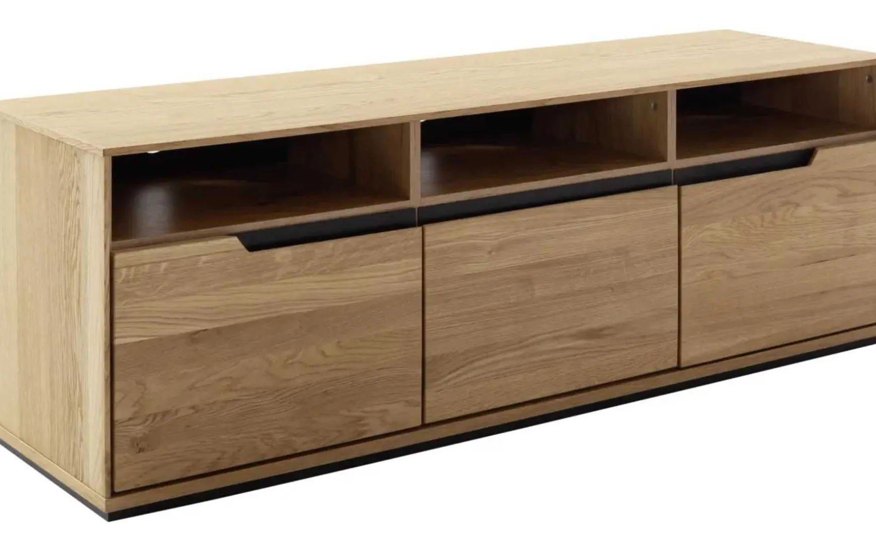Verleihen Sie Ihrem Wohnzimmer einen Hauch von Natur und Stil mit diesem TV Element. Mit einer Größe von ca. 152,5 x 51,5 x 45,5 cm bietet es nicht nur ausreichend Platz für Ihren Fernseher, sondern auch eine praktische Aufbewahrungslösung für alle Ihre Mediengeräte und Zubehör. Der Korpus in Wildeiche Nachbildung und die massiven Wildeiche Fronten sorgen für eine warme, einladende Atmosphäre. Die Kombination aus zwei Türen, einem Schubkasten und drei offenen Fächern bietet vielseitigen Stauraum für Ihre Unterhaltungselektronik, DVDs, Dekoration und mehr.