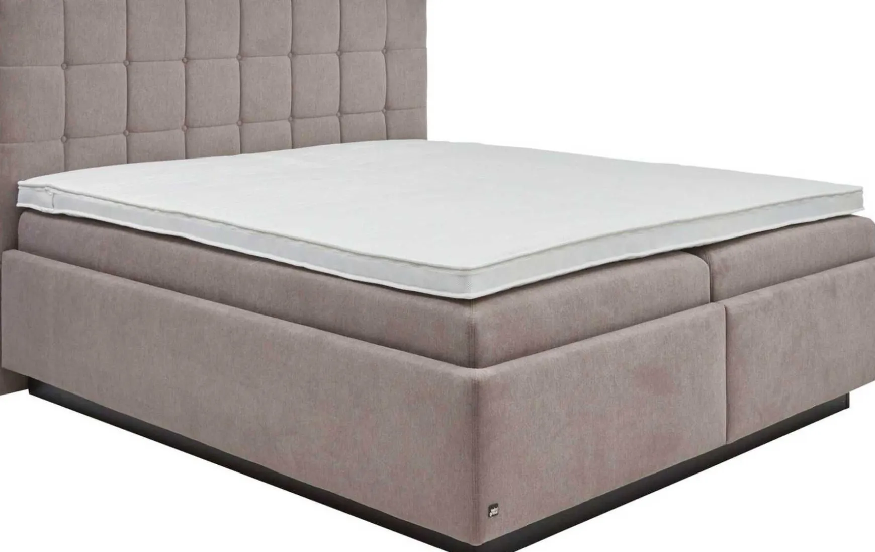 Das Polsterbett bringt mit seinem granitbraunen Bezug Ruhe in Ihr Schlafzimmer. Geliefert wird das Doppelbett mit zwei Wende-Matratzen – einmal im Härtegrad 2 und einmal im Härtegrad 3. Den dehnbaren und anpassungsfähigen Matratzenbezug mit versteppter Hochbauschfaser können Sie über den vierseitigen Reißverschluss schnell und einfach abnehmen sowie bequem bei bis zu 60 Grad Celsius in der Waschmaschine waschen. Praktisch sind zudem die vier Matratzengriffe für ein leichtes Handling beim Drehen und Wenden. Die Matratzenhöhe beläuft sich auf äußerst angenehme 24 cm. Ebenfalls im Preis inbegriffen ist der ein durchgehender Gel-Topper. Er bietet einen besonders weichen, luftigen und dennoch stützenden 7-Zonen-Gelschaum mit offenporiger Struktur. Hohe Luftdurchlässigkeit und ein guter Feuchtigkeitsaustausch sorgen für ein gutes Schlafgefühl. Der ca. 9 cm hohe Topper ist mit einem umlaufenden Klimaband ausgestattet.