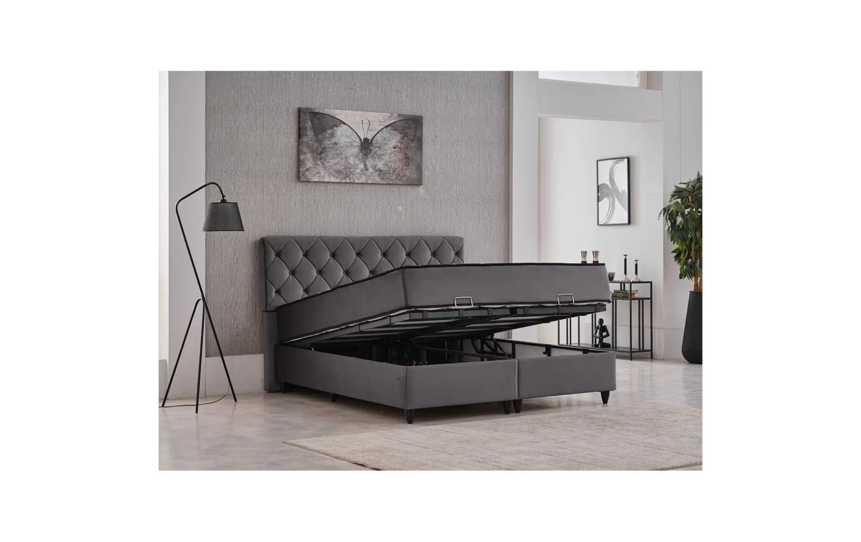 Das moderne Polsterbett in Grau überzeugt durch ein elegantes Design und hohen Komfort. Das gepolsterte Kopfteil mit dekorativer Steppung verleiht dem Bett eine stilvolle Optik und lädt zum entspannten Anlehnen ein. Großzügige Bettkästen bieten praktischen Stauraum für Bettwäsche und Textilien. Mit einer Liegefläche von ca. 160 x 200 cm sowie Gesamtmaßen von ca. 176 x 217 x 135 cm (Breite / Tiefe / Höhe) eignet sich das Bett ideal für komfortables Schlafen. Der hochwertige Stoffbezug in zeitlosem Grau fügt sich harmonisch in moderne Schlafzimmer ein. Das Polsterbett wird vormontiert geliefert und ist sofort einsatzbereit.