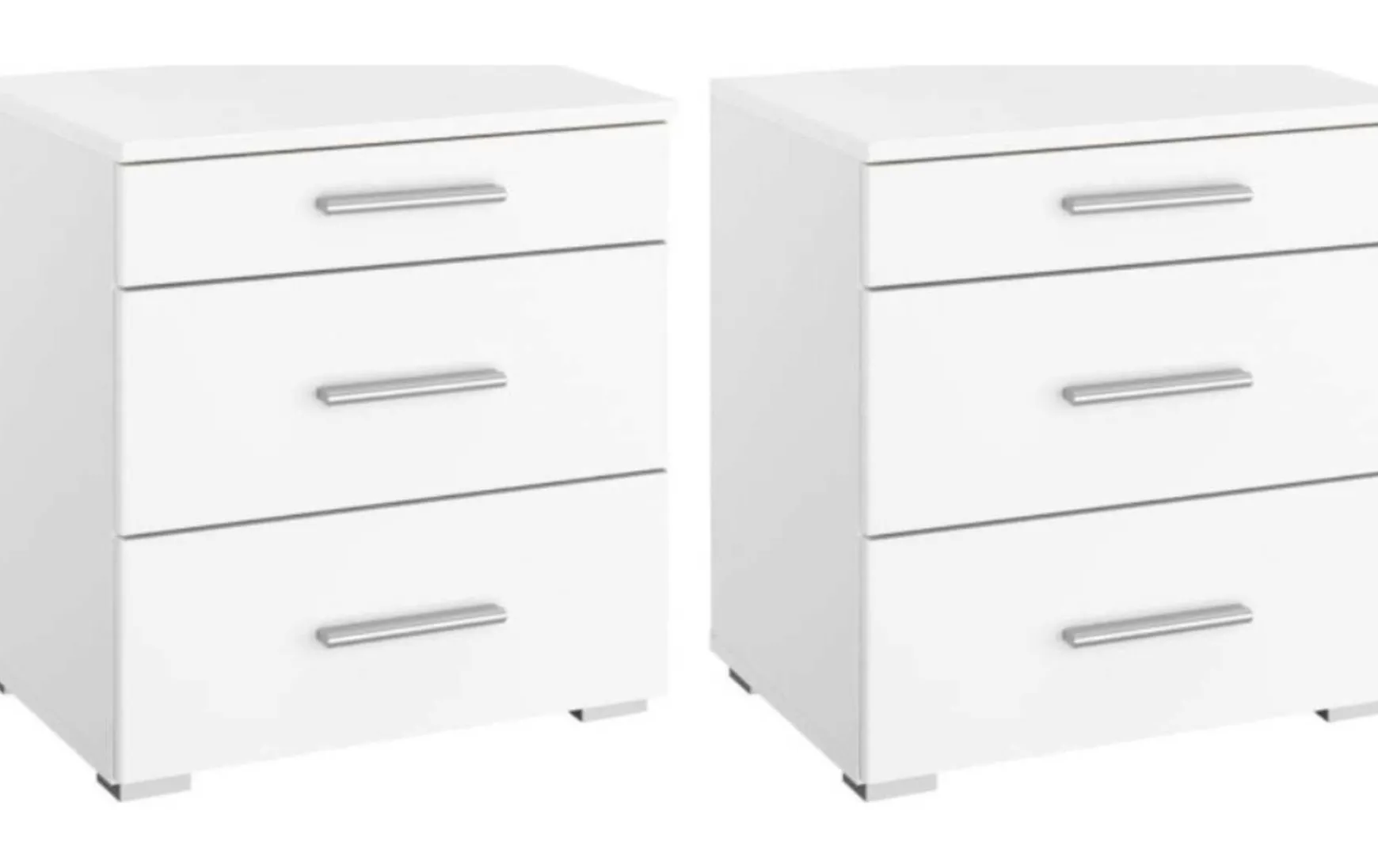 Das Nachttisch-Paar in zeitlosem Alpinweiß überzeugt durch modernes Design und praktische Funktionalität. Jeder Nachttisch ist mit drei geräumigen Schubladen ausgestattet und bietet ausreichend Stauraum für persönliche Utensilien direkt am Bett. Die schlichte weiße Optik mit schwarzem Fuß fügt sich harmonisch in verschiedene Schlafzimmerstile ein, während das Innendekor in Texline einen dezenten Kontrast setzt. Mit Maßen von ca. 47 × 42 × 52 cm sind die Nachttische kompakt und dennoch geräumig. Das Set ist sowohl einzeln als auch als Paar erhältlich, zudem stehen zwei Farbvarianten sowie passende Beimöbel zum individuellen Preis zur Auswahl. Das Nachttisch-Paar wird zerlegt geliefert und lässt sich einfach montieren, Dekoration, Bett und weitere Ergänzungen sind nicht im Lieferumfang enthalten.
