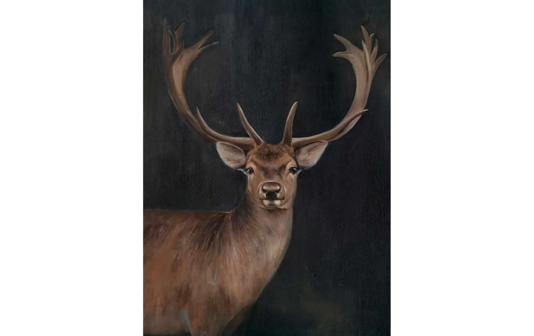 Dieses hochwertige Ölbild vom Hirsch in Frontalansicht bringt ein modernes, elegantes Flair in nahezu jeden Raum. Das handgemalte Kunstwerk besticht durch seine detaillierte Darstellung und ist ein stilvolles Highlight für Wohnzimmer, Esszimmer, Flur oder Büro. Das Bild wird fertig zum Aufhängen geliefert und ist sofort einsatzbereit. Mit den Gesamtmaßen inkl. Rahmen von 70 × 100 cm setzt es einen dekorativen Akzent an jeder Wand.