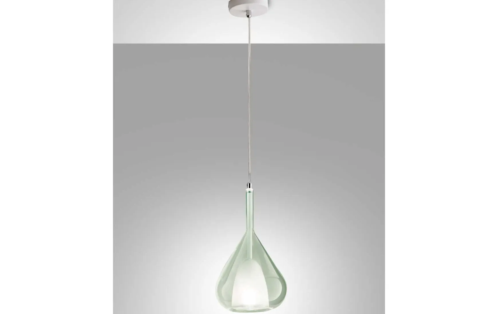 Markante Glas-Pendelleuchte in verspielter Tropfenform und eingearbeitetem weißem Innenglas