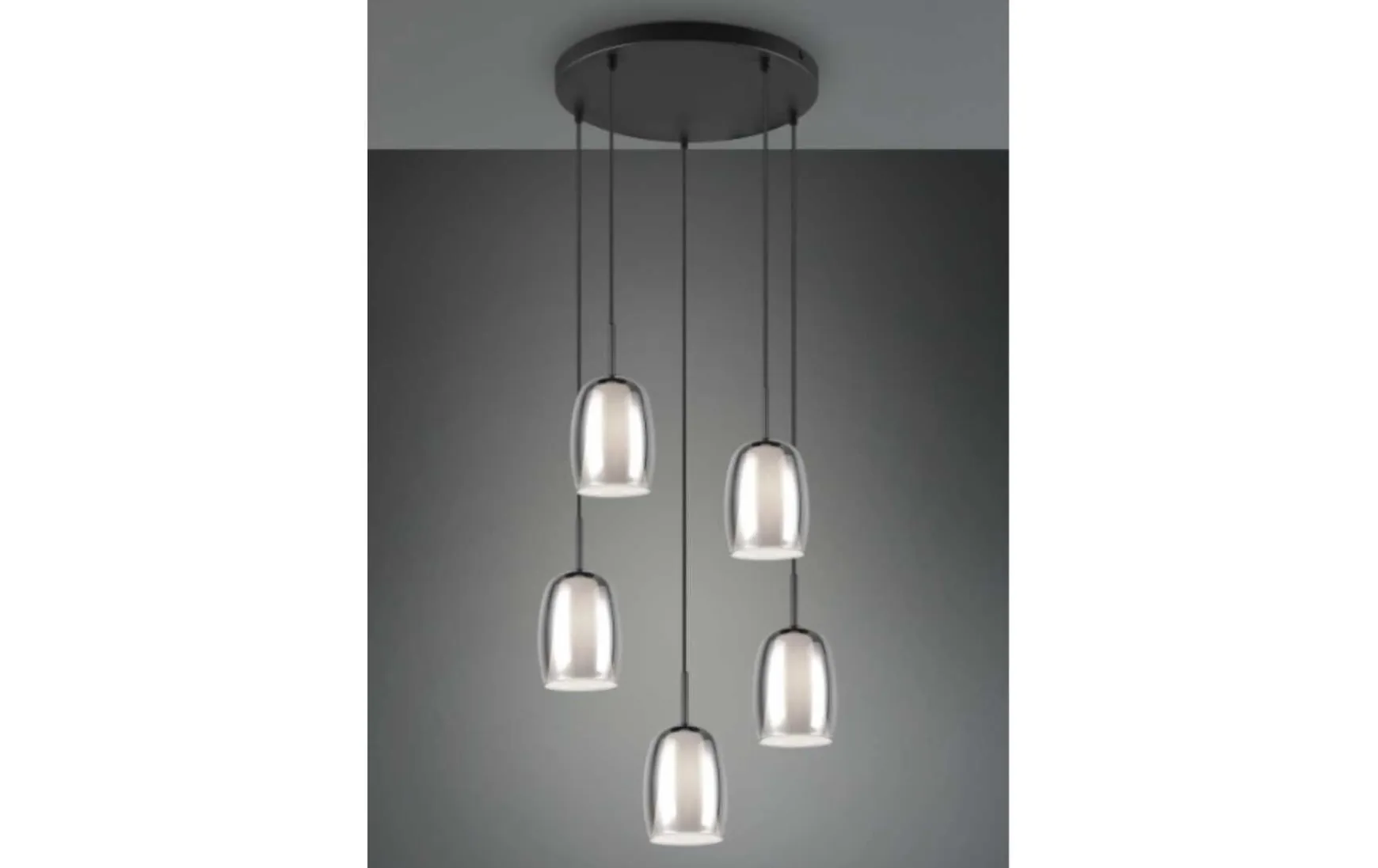 Diese Pendelleuchte setzt stilvolle und dekorative Akzente, die perfekt dem aktuellen Trend entsprechen. Mit ihren zwei elegant geformten Leuchtschirmen aus Glas je Lichtquelle zaubert sie ein besonders sanftes, stimmungsvolles Licht über einem Ess- oder Wohnzimmertisch. Die Verwendung von schwarz mattem Metall verleiht der Leuchte eine zeitlose Eleganz, während die Kombination aus dem äußeren rauchfarbigen Glasschirm und dem inneren weißen Glasschirm gleichzeitig einen Hauch von Modernität ausstrahlt. Dadurch fügt sich die Pendelleuchte mühelos in unterschiedlichste Einrichtungsstile ein. Für eine energiesparende Beleuchtung empfiehlt sich die Verwendung eines LED Leuchtmittels. Diese sind eine optimale Alternative zu herkömmlichen Halogen Leuchtmitteln und stehen für eine hohe Lichtqualität und eine Energieeinsparung von bis zu 80%. Zusätzlich profitieren Sie bei LED Leuchtmitteln von einer langen Lebensdauer, einer geringen Wärmeentwicklung und schonen gleichzeitig die Umwelt.
