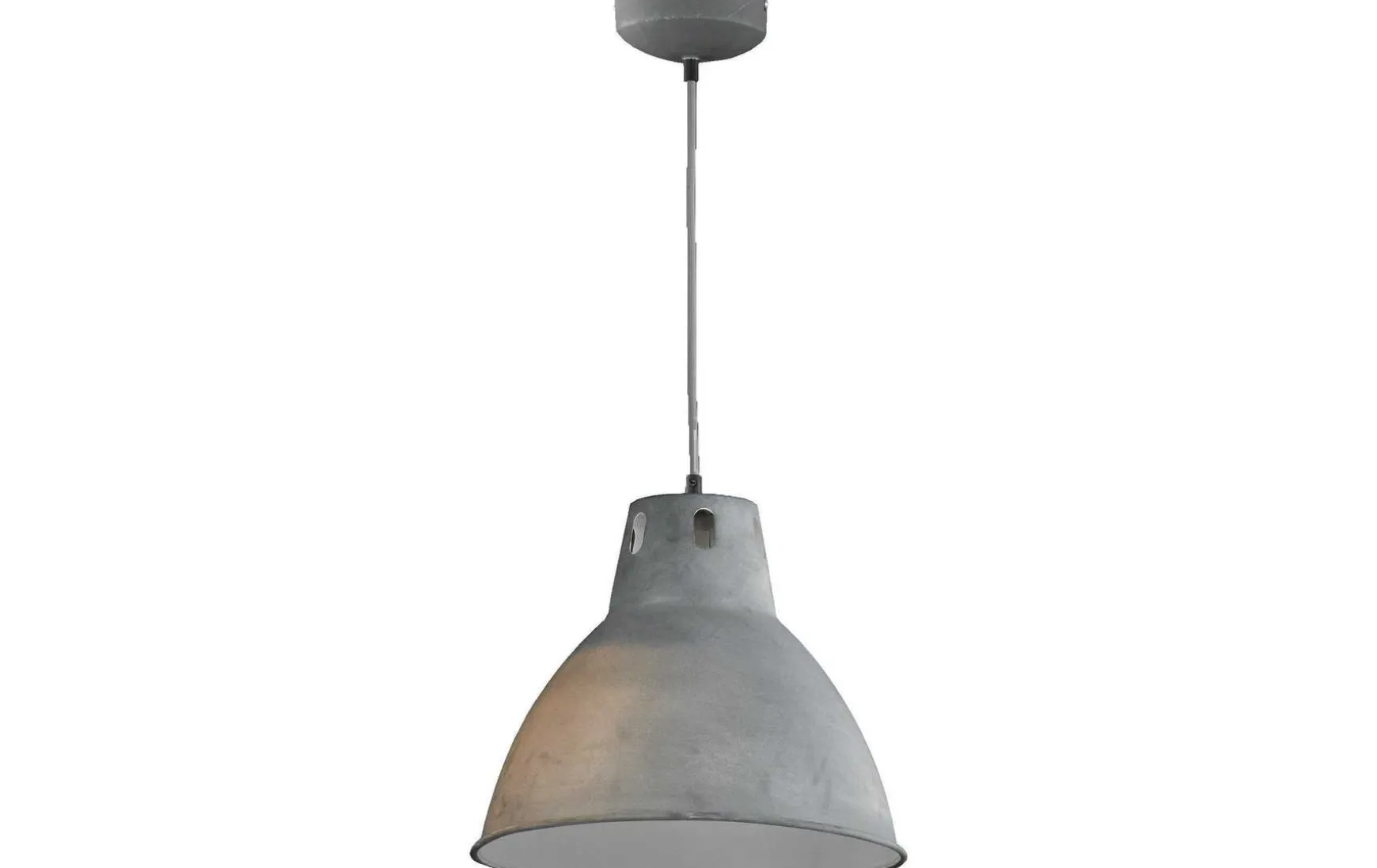 Wunderbare Hängelampe für Ihr Zuhause: Mit der Pendelleuchte greifen Sie den angesagten Industrie-Look auf und gestalten die Beleuchtung in Ihren vier Wänden ansprechend und mit dem gewissen Etwas. Über einem Esstisch kommt die Pendellampe optimal zur Geltung und taucht den Essbereich gleichzeitig in ein schönes Licht. Der betonfarbene Lampenschirm aus Metall passt sich farblich hervorragend Ihrem eleganten Raumkonzept an und harmoniert mit Einrichtungsgegenständen in allen Farbtönen. Der Durchmesser dieses Wohnaccessoires beträgt ca. 31 cm. Zur Inbetriebnahme der Hängelampe setzen Sie ein Leuchtmittel mit einer E27-Fassung, maximal 46 Watt und der Energieeffizienzklasse A++ bis E ein, da Sie das Wohnaccessoire ohne Leuchtmittel erhalten. Unser Einrichtungstipp: Hängen Sie mehrere dieser Hängeleuchten nebeneinander, um Ihren Wohnraum großflächig auszuleuchten und einen Blickfang an der Zimmerdecke zu schaffen.