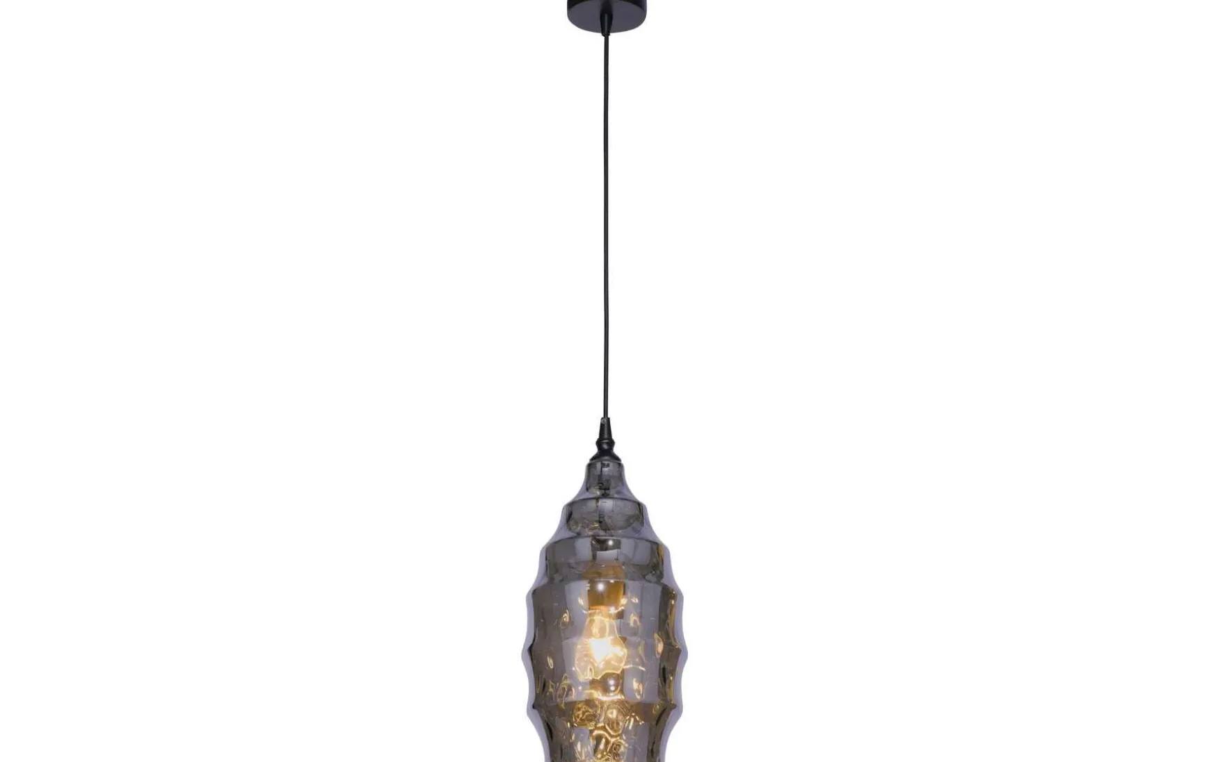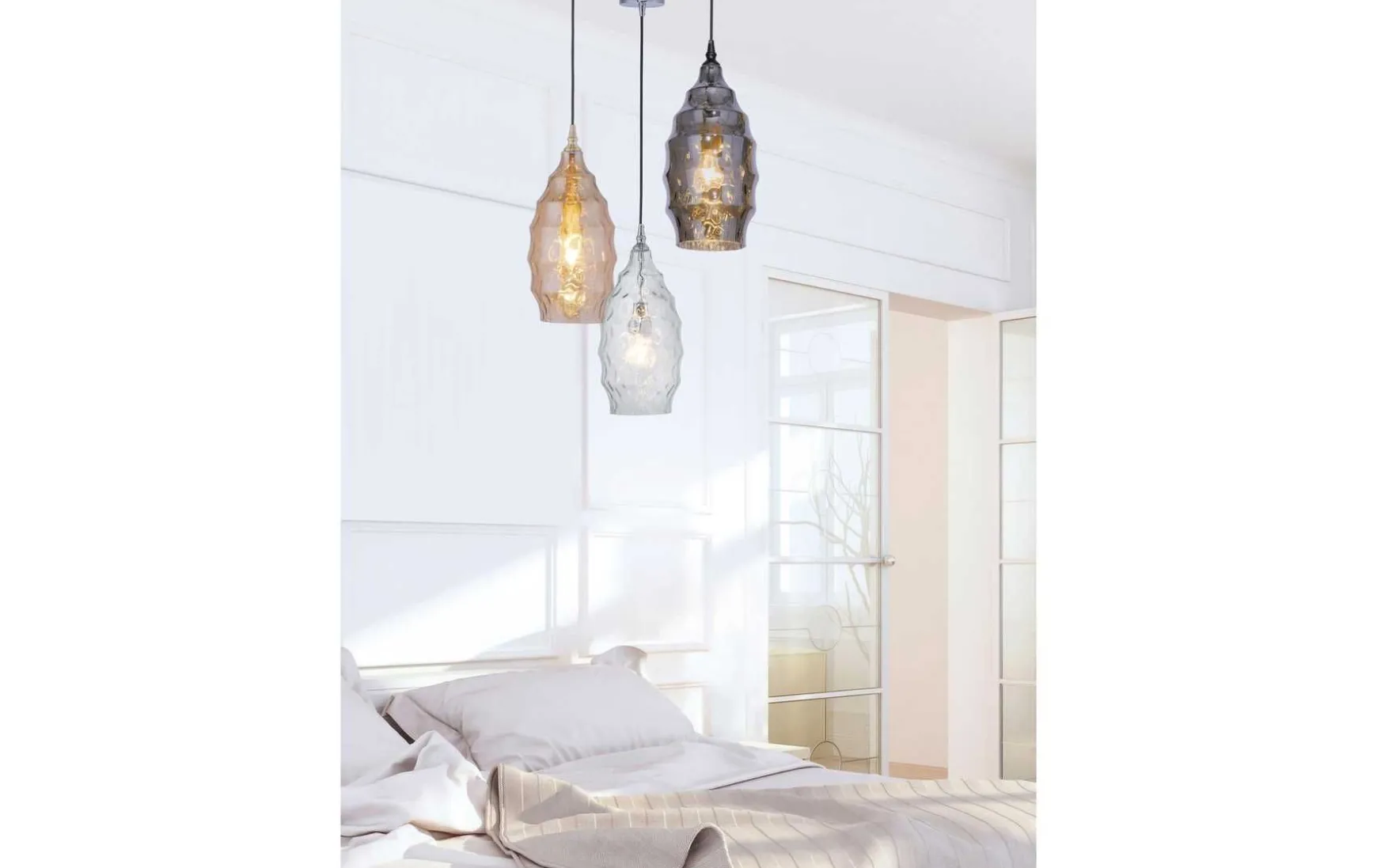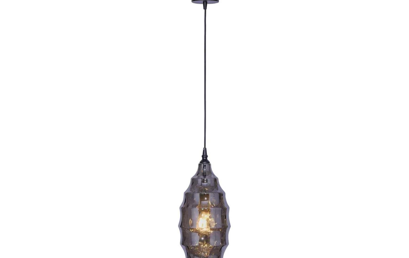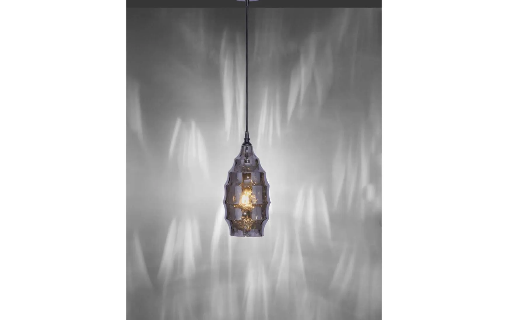 Die Pendelleuchte wird gekonnt durch das hübsche rauchrfarbige Glas in Szene gesetzt.