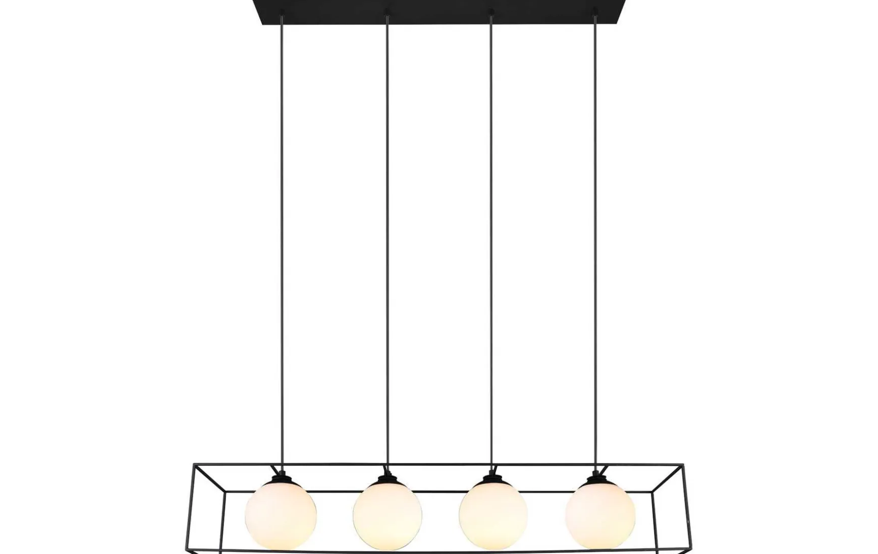 Der Rahmen besteht aus Metall in Schwarz matt, die Gläser der Leuchte sind weiß.