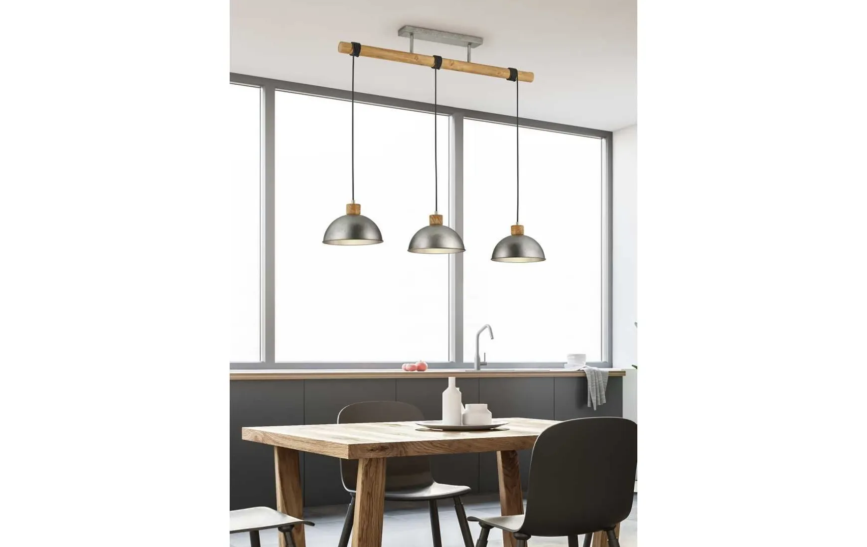 Diese 3-flammige Pendelleuchte besticht mit der Kombination aus Holz und Metall und ist in jedem Wohnraum ein echter Hingucker.