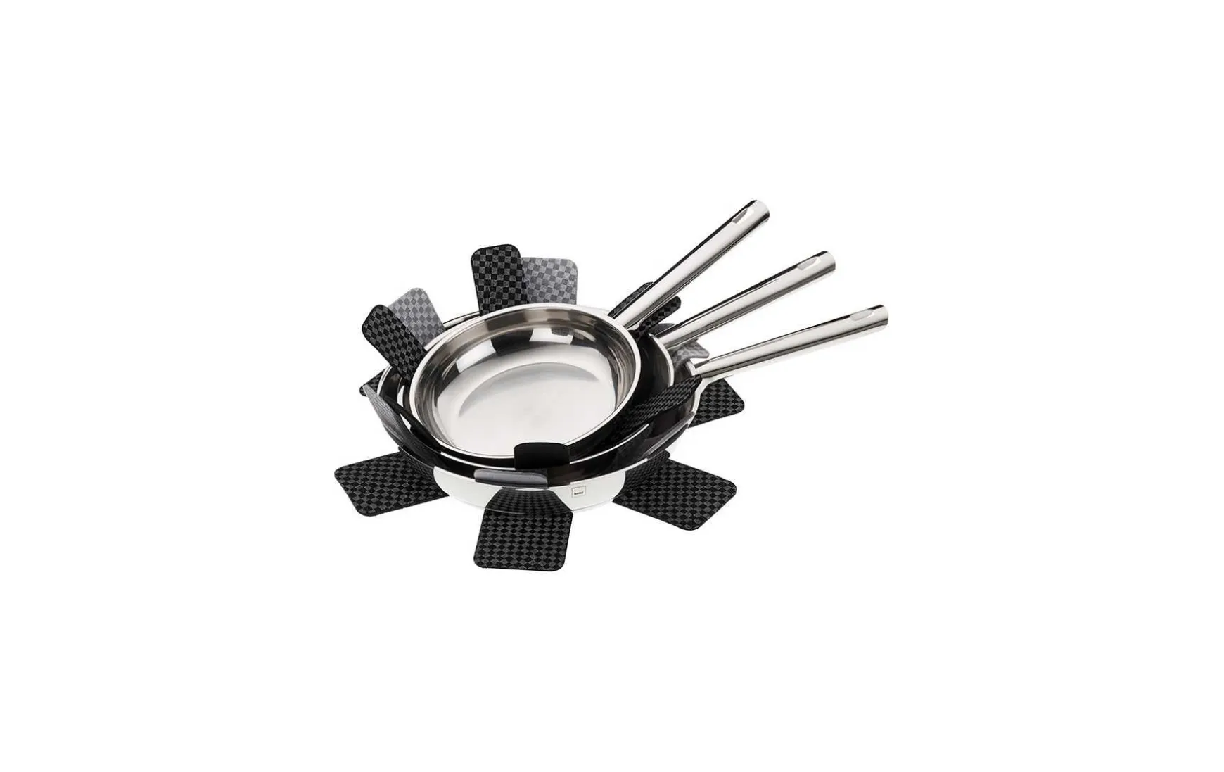 Das sichere Stapeln Ihrer Pfannen mit dem dreiteiligen Pfannenschutzset.