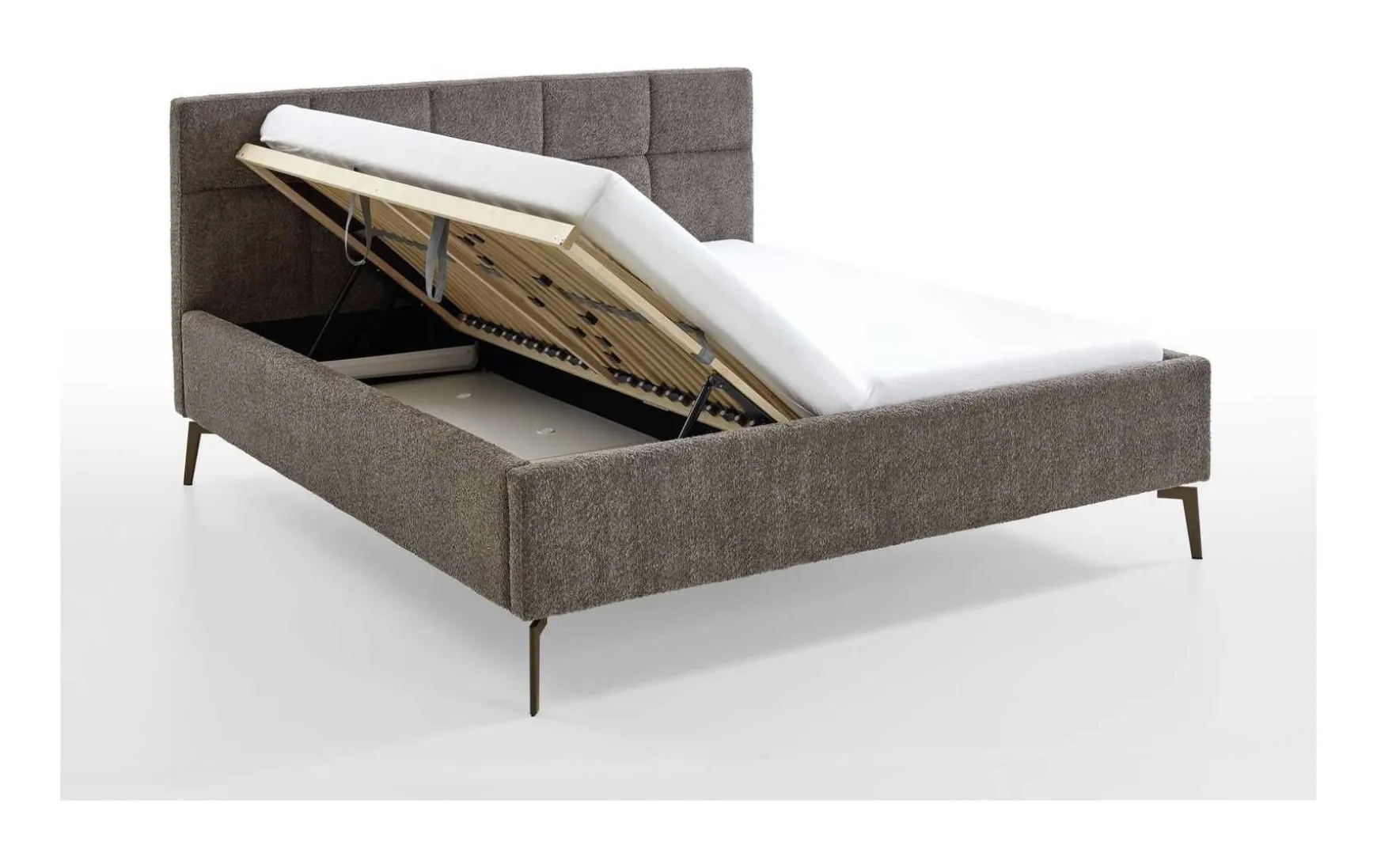 Dieses elegante Polsterbett mit gestepptem Kopfteil setzt stilvolle Akzente in Ihrem Schlafzimmer. Die edle Polsterung sorgt nicht nur für eine hochwertige Optik, sondern bietet auch angenehmen Komfort beim Anlehnen – ideal zum Lesen oder Entspannen. Die Metallfüße in Bronze unterstreichen das moderne Design und verleihen dem Bett eine exklusive, zeitlose Ausstrahlung. Mit der großzügigen Liegefläche von 180 × 200 cm bietet das Polsterbett viel Platz für erholsamen Schlaf zu zweit. Eine perfekte Kombination aus Komfort, Design und Stabilität für ein stilvolles Schlafzimmerambiente.