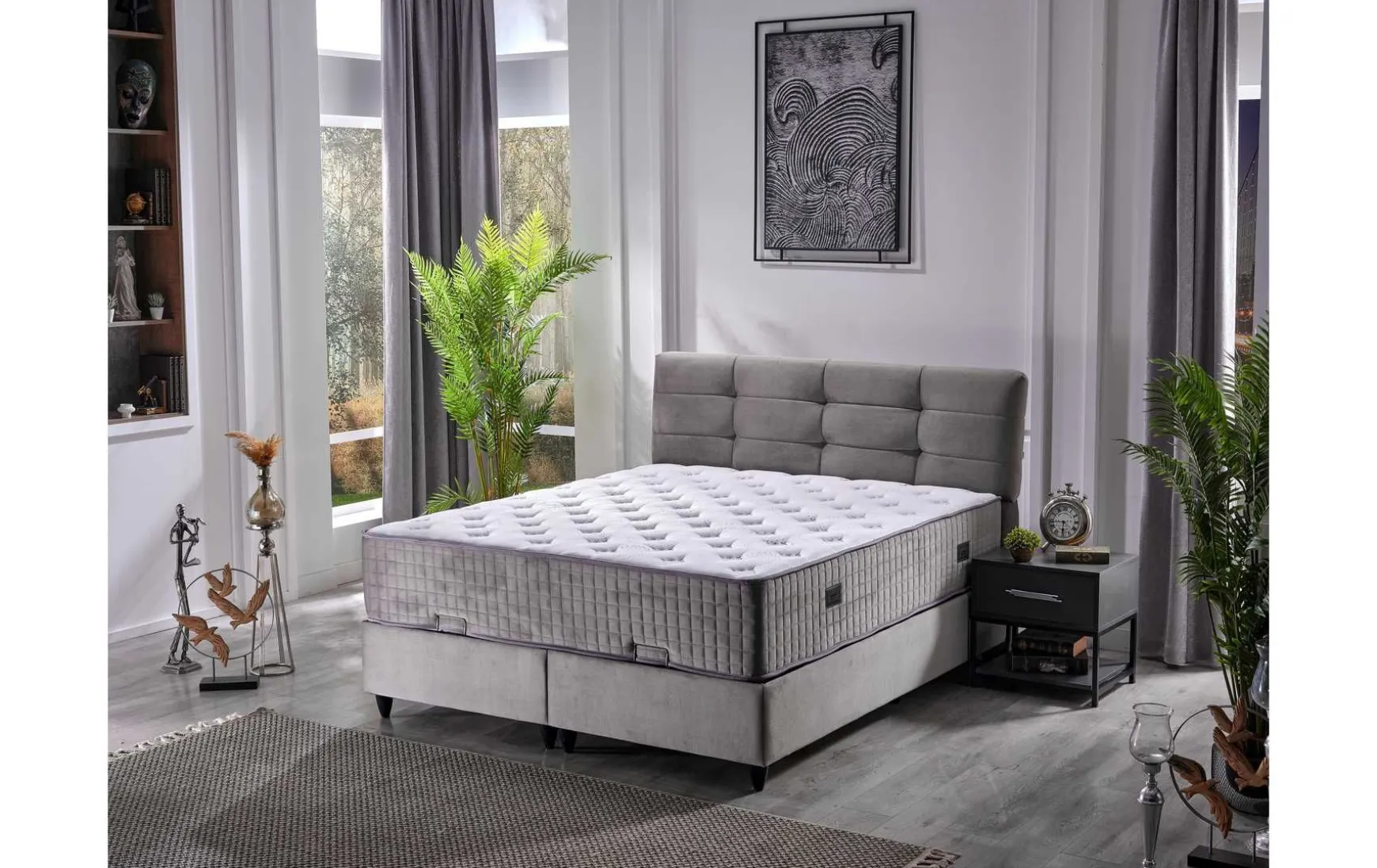 Das Polsterbett mit Liegefläche ca. 180 × 200 cm vereint luxuriösen Schlafkomfort mit elegantem Design und praktischer Funktionalität. Der Matratzenbezug mit aufwändiger seitlicher Steppung sowie das hochwertig gesteppte Kingsize-Kopfteil verleihen dem Bett eine besonders edle Optik und machen es zum Blickfang im Schlafzimmer. Für zusätzlichen Komfort sorgen die großzügigen Bettkästen mit integriertem Stauraum, die ausreichend Platz für Bettwäsche, Decken oder Kissen bieten. Der komfortable Taschenfederkern unterstützt den Körper optimal und ermöglicht erholsamen Schlaf bei einer maximalen Belastbarkeit von ca. 130 kg. Mit Maßen von ca. 197 × 218 × 142 cm (B/T/H), einer Liegehöhe von ca. 72 cm und dem zeitlosen grauen Stoffbezug aus 70 % Polyester und 30 % Baumwolle passt das Polsterbett perfekt in moderne Schlafzimmer. Das Bett wird vormontiert geliefert und überzeugt durch Komfort, Stauraum und stilvolles Design.