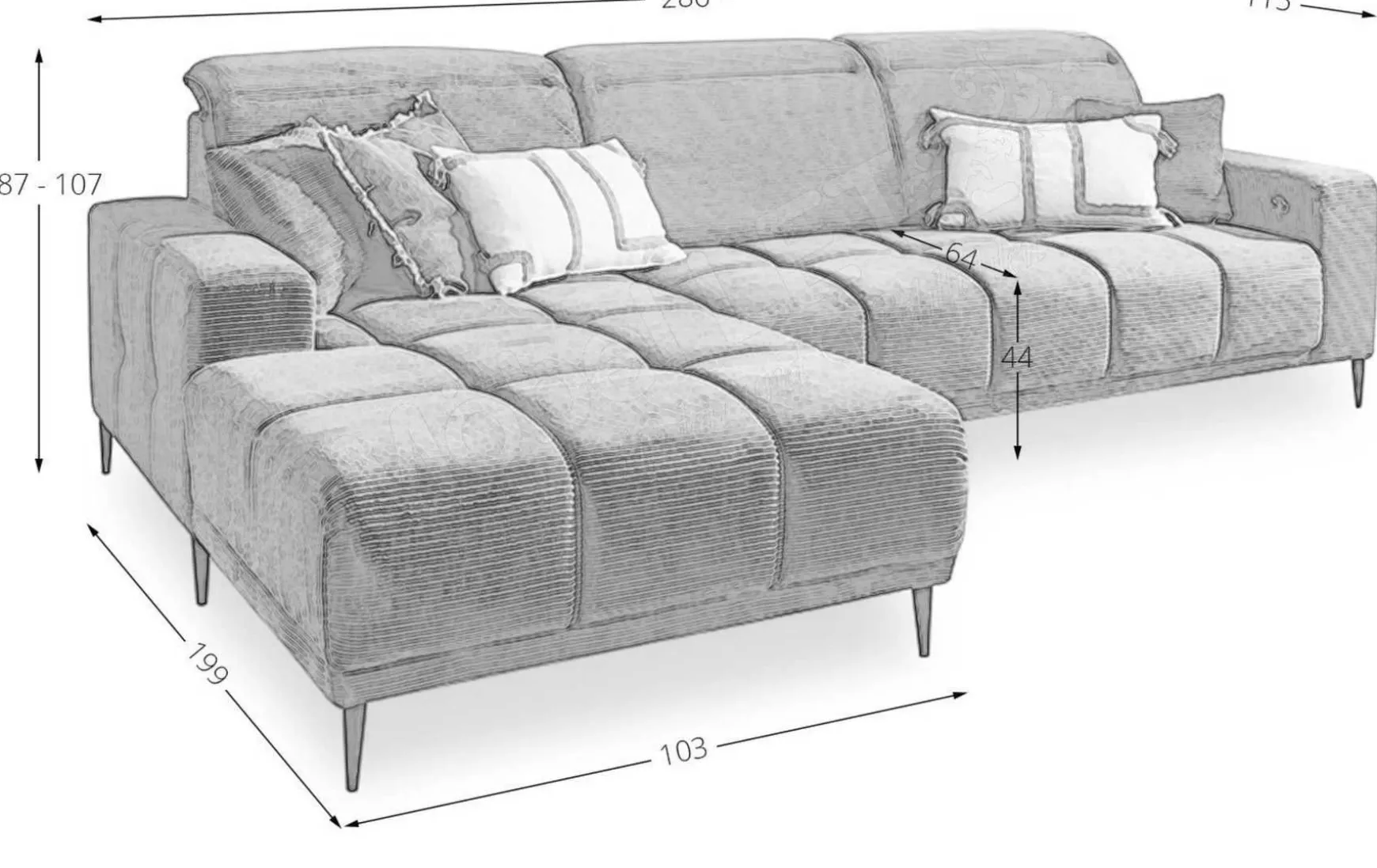 Diese moderne Polsterecke in angesagtem Cordgrau verbindet trendiges Design mit hohem Sitzkomfort. Der weiche Cordstoff verleiht dem Sofa eine wohnliche Optik, während die integrierte Kopfteilverstellung individuelles Entspannen ermöglicht. Dank der großzügigen Maße bietet die L-förmige Polsterecke viel Platz für Familie und Gäste. Die bequeme Polsterung mit Wellenunterfederung und Federkern sorgt für angenehmen Sitzkomfort, ergänzt durch stilvolle Zierkissen. Schwarze Metallfüße runden das moderne Gesamtbild harmonisch ab.
