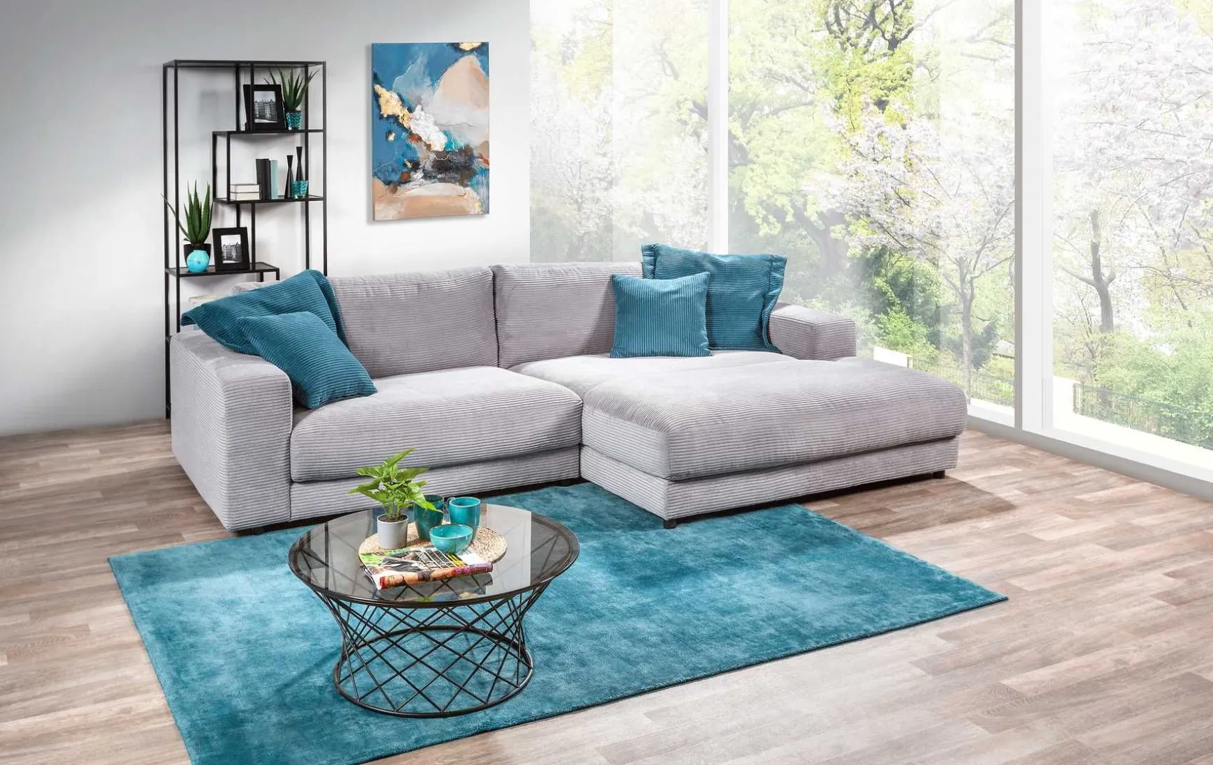 Diese moderne Polsterecke in elegantem Cord Grey bietet großzügigen Platz zum Entspannen und Wohlfühlen. Mit ihrem klaren Design, der bequemen Polsterung und der echten Rückenbezugsqualität eignet sie sich ideal auch für frei stehende Platzierungen im Wohnraum. Die angenehme Sitztiefe sowie die weiche Cord-Oberfläche sorgen für hohen Komfort, während die L-Form optimale Raumnutzung ermöglicht. Dank individueller Konfigurationsmöglichkeiten lässt sich die Polsterecke perfekt an persönliche Wohnbedürfnisse anpassen.