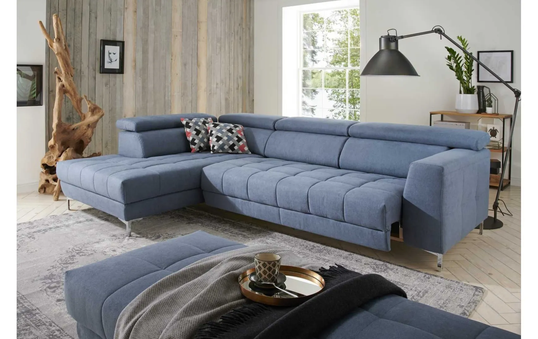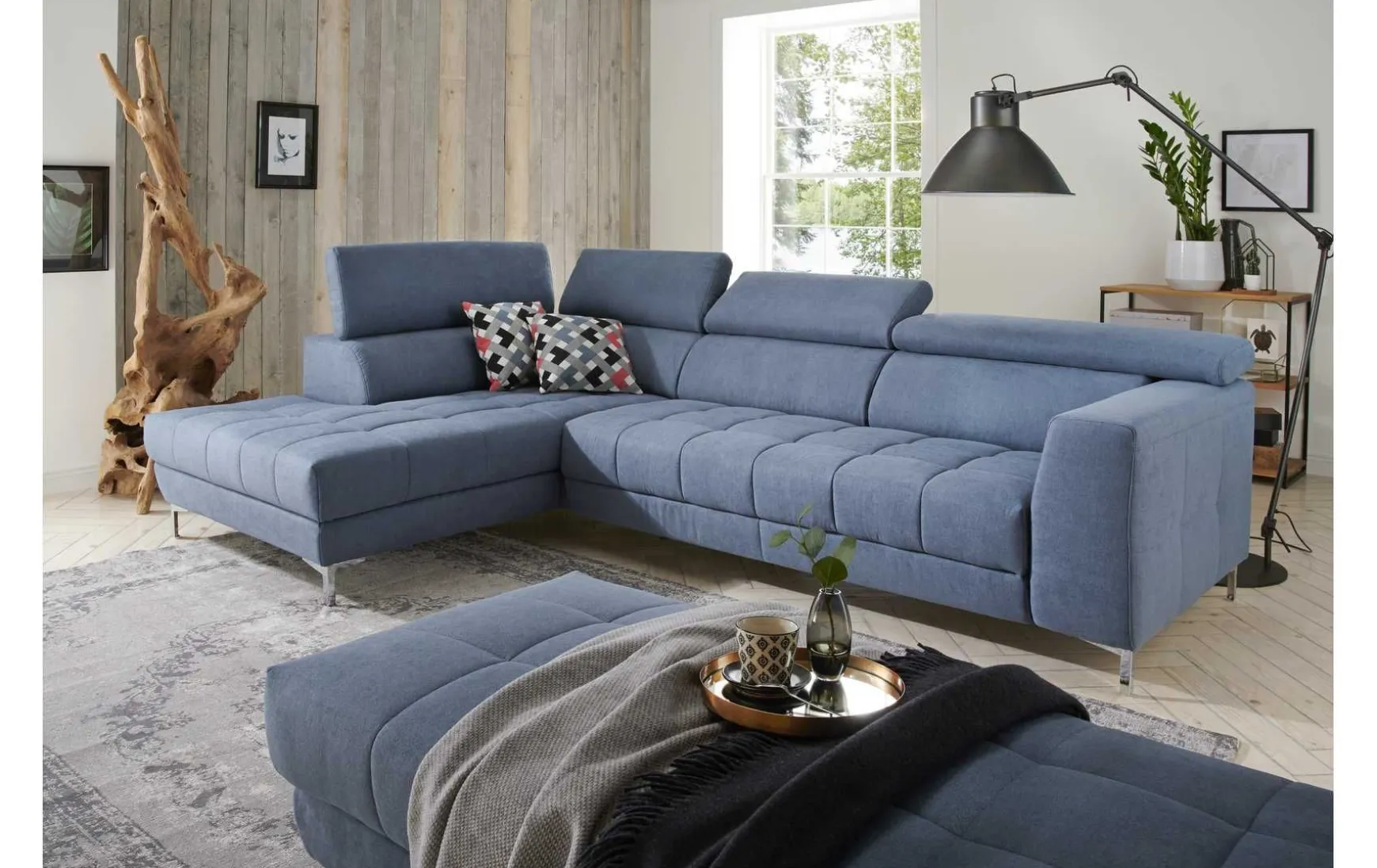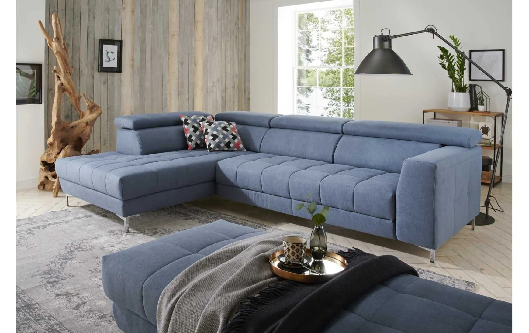 Sie legen viel Wert auf hohen Sitzkomfort? Dann sind Sie bei diesem Modell genau richtig. Das moderne Ecksofa ist in drei unterschiedlichen Farben erhältlich. Durch die Polsterung aus Polyätherschaum und einer Nosag-Federung wird die aktuelle Sitzposition gezielt unterstützt. Überzeugen Sie sich selbst und holen Sie sich das Wohnglück in Ihr Zuhause. Modell nach Ihren Wünschen in unseren Filialen individuell planbar. Wir beraten Sie gerne.