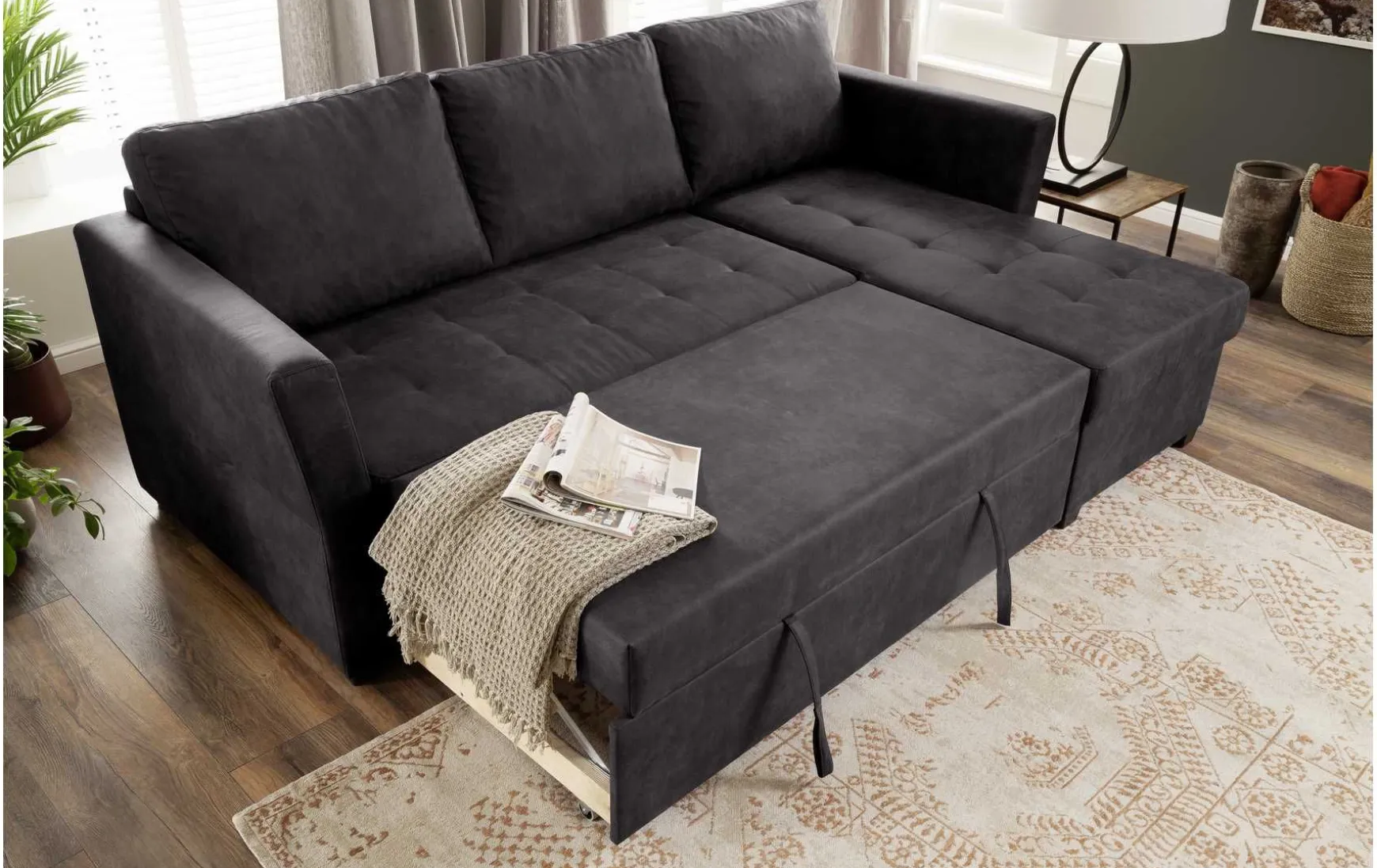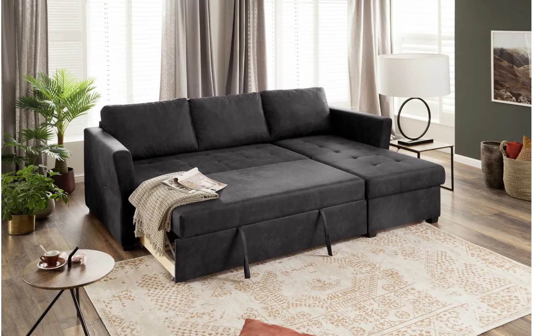 Diese Garnitur ist ein Ausdruck ästhetischer Formen und eines ausgesprochen zeitgenössischen Stils, in dem Design und Funktion in erhabener Harmonie nebeneinander existieren. Durch seine Bettfunktion bietet Ihnen dieses Modell sogar in allen Lagen perfekten Komfort. Des Weiteren schaffen Sie neuen Platz dank des integrierten Bettkasten.
