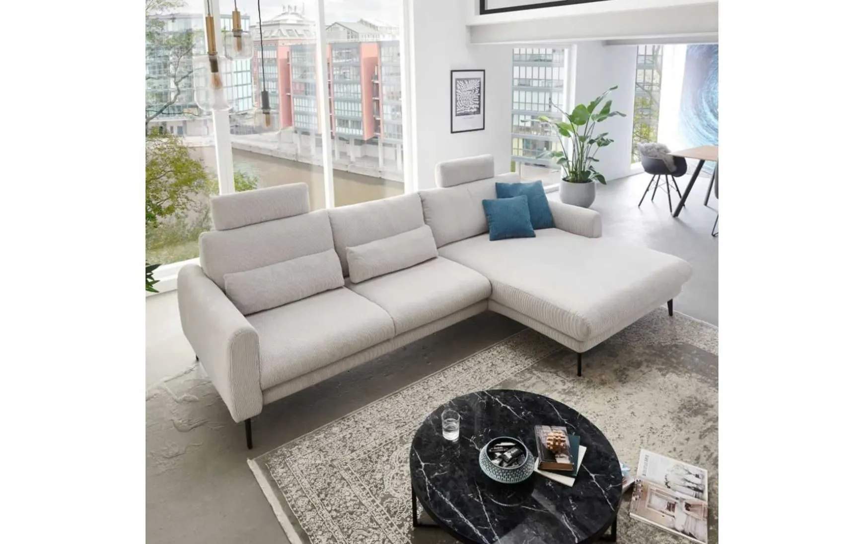 Dieses Ecksofa bietet Ihnen höchsten Komfort sowie vielseitige Funktionen. Mit seiner legeren Polsterung und der praktischen Sitztiefenverstellung passt sich das Sofa mit Stoffbezug optimal an Ihre individuellen Bedürfnisse an. Die motorische Relaxfunktion im Canapé ermöglicht entspanntes Zurücklehnen auf Knopfdruck und sorgt für maximale Erholung im Alltag. Optional lässt sich das Sofa durch eine Armteilverstellung sowie eine Kopfstütze erweitern, um den Sitzkomfort noch weiter zu individualisieren. Die moderne Fußausführung aus Metall unterstreicht das zeitgemäße Design und sorgt für einen stabilen Stand. Das Ecksofa mit Relaxfunktion ist in verschiedenen Stoffen und Farben erhältlich und fügt sich somit harmonisch in jedes Wohnambiente ein. Auch unterschiedliche Fußausführungen stehen zur Auswahl, sodass das Sofa perfekt an Ihren persönlichen Stil angepasst werden kann. Hochwertige Materialien, sorgfältige Verarbeitung und durchdachte Funktionen stehen dabei stets im Mittelpunkt. Dank der Kombination aus Komfort, Flexibilität und Qualität ist dieses Ecksofa die ideale Wahl für Ihr Wohnzimmer. Besonders die Sitztiefenverstellung und die motorische Relaxfunktion werden Sie bei jedem Hinsetzen aufs Neue zu schätzen wissen. Zögern Sie nicht länger und erleben Sie, wie dieses Sofa Ihren Wohnraum bereichert. Bei Fragen stehen wir Ihnen selbstverständlich gerne zur Verfügung.
