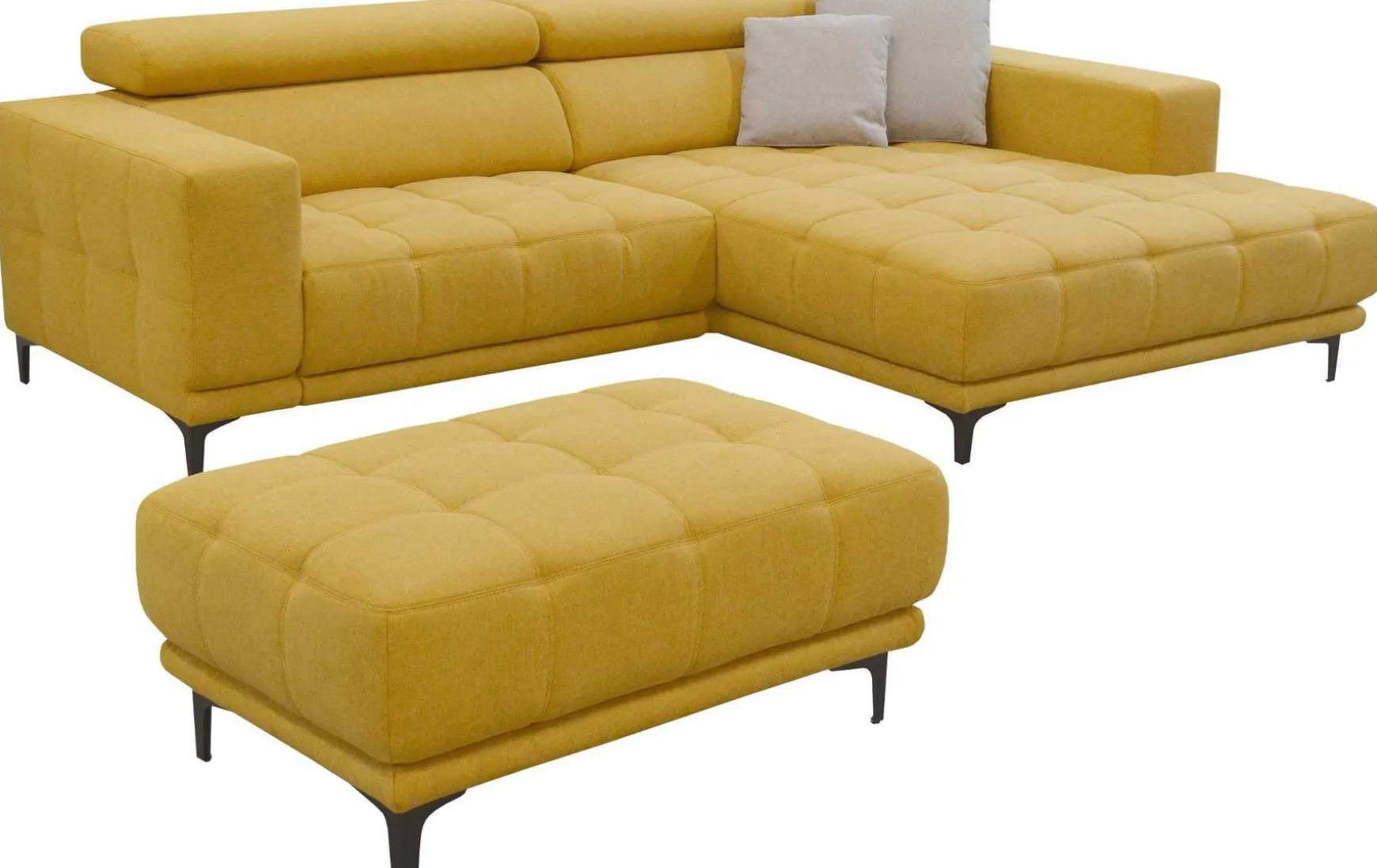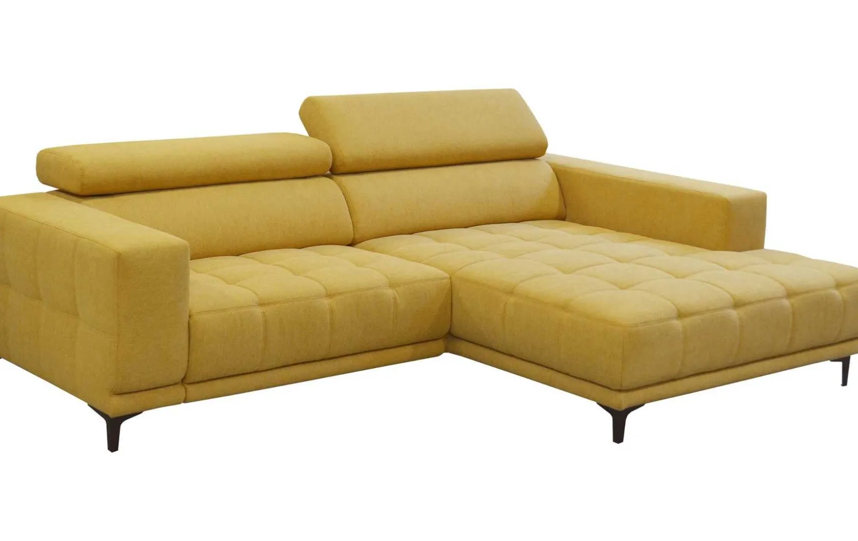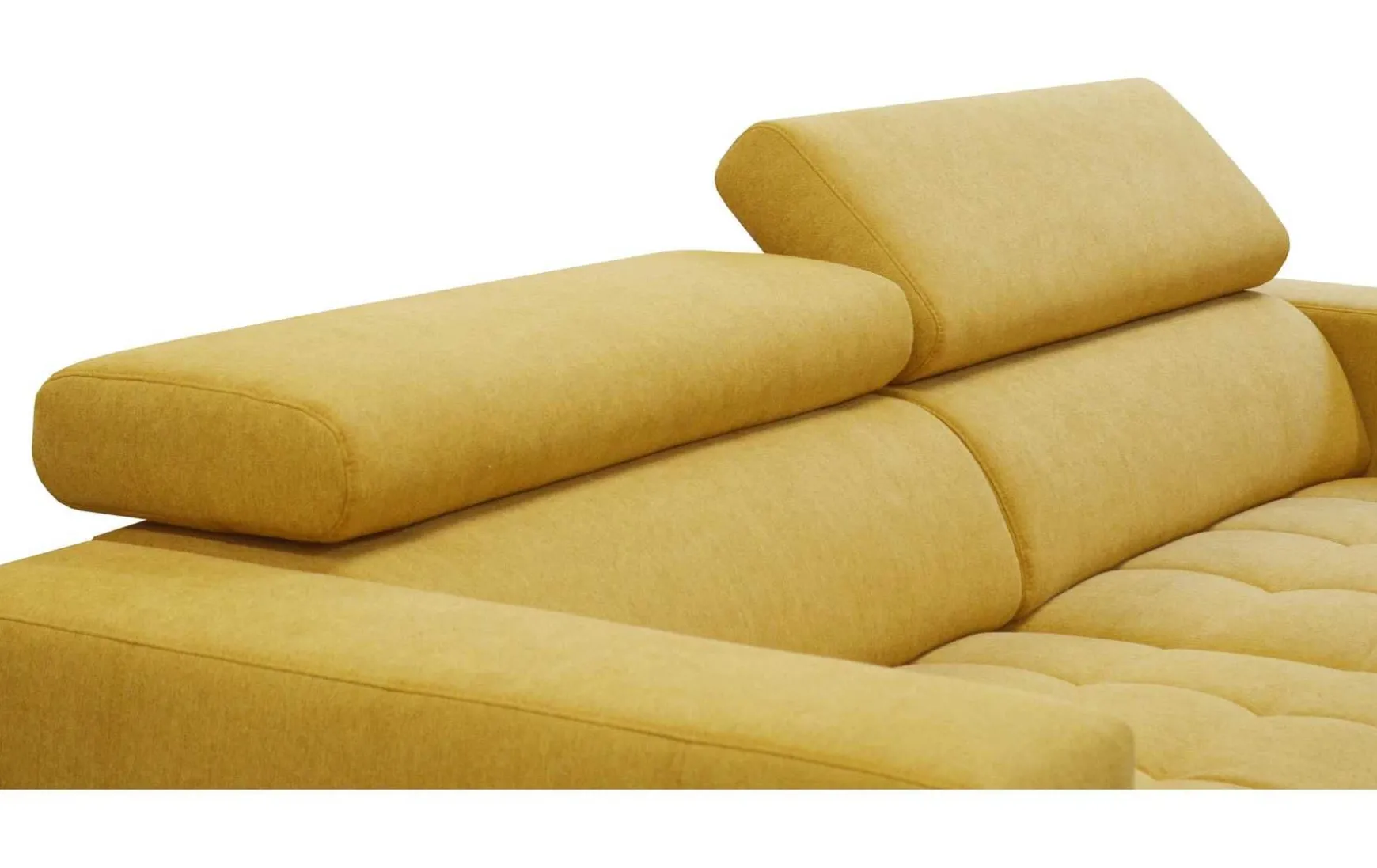 Diese moderne Polsterecke verbindet hohen Sitzkomfort mit praktischen Funktionen und einem auffälligen Design. Die integrierte Kopfteilverstellung ermöglicht eine individuelle Anpassung für entspanntes Sitzen oder Zurücklehnen, während die Vorziehbank zusätzlichen Platz zum Relaxen bietet. Der integrierte USB-Anschluss sorgt für zeitgemäßen Komfort und macht die Polsterecke zum idealen Mittelpunkt des Wohnraums. Der Stoffbezug in Honiggelb setzt dabei einen frischen, wohnlichen Akzent.