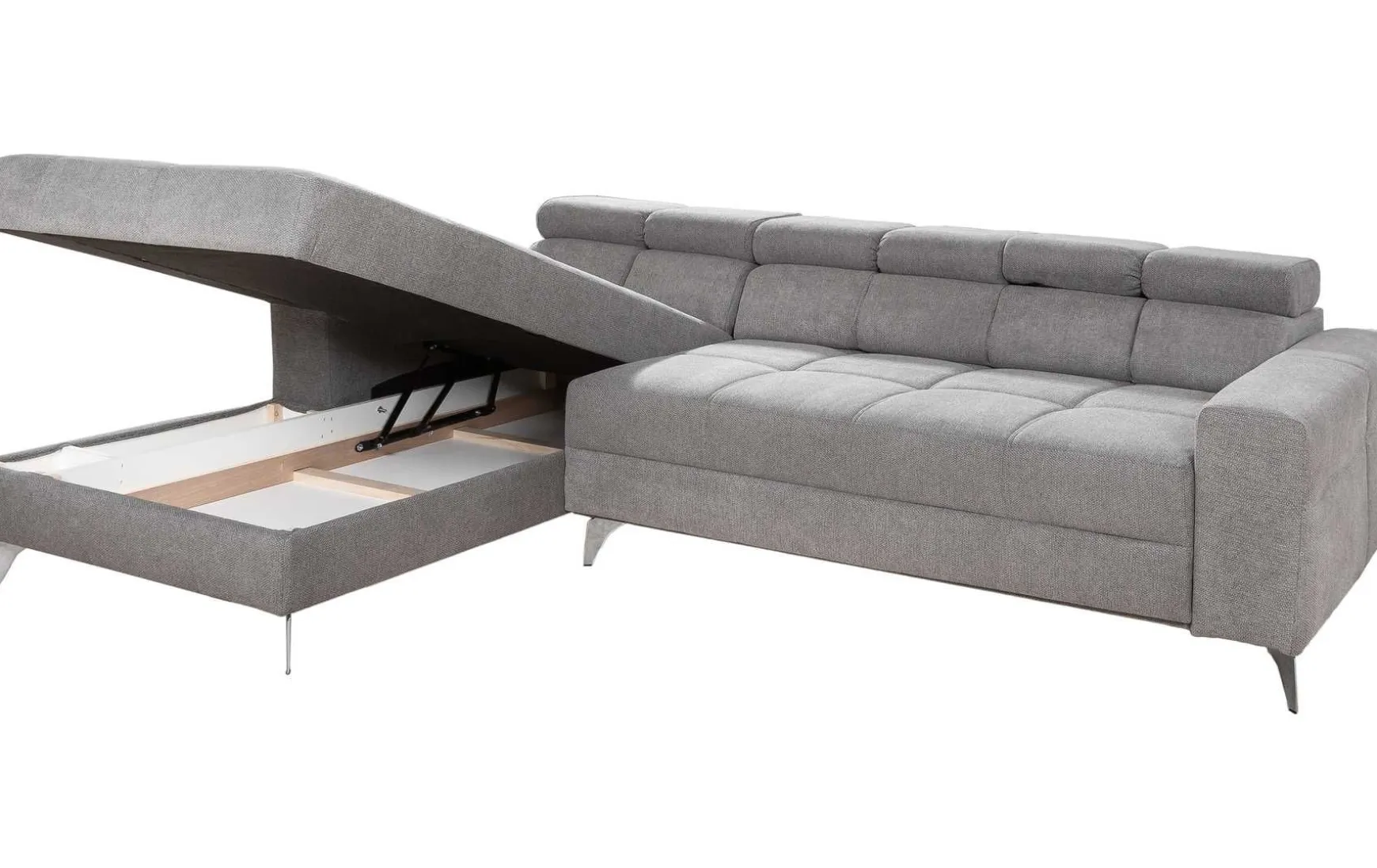 Die manuell verstellbaren Kopflehnen bieten zusätzlichen Halt und ermöglichen eine individuell angepasste Sitzposition. In der Ottomane befindet sich ein großzügiger Bettkasten, perfekt für Decken, Kissen oder saisonale Textilien. Der Sitzkomfort basiert auf Komfortschaum in Kombination mit einer Wellenunterfederung – ein Aufbau wie bei hochwertigen Polstermöbeln, der langlebige Bequemlichkeit garantiert.