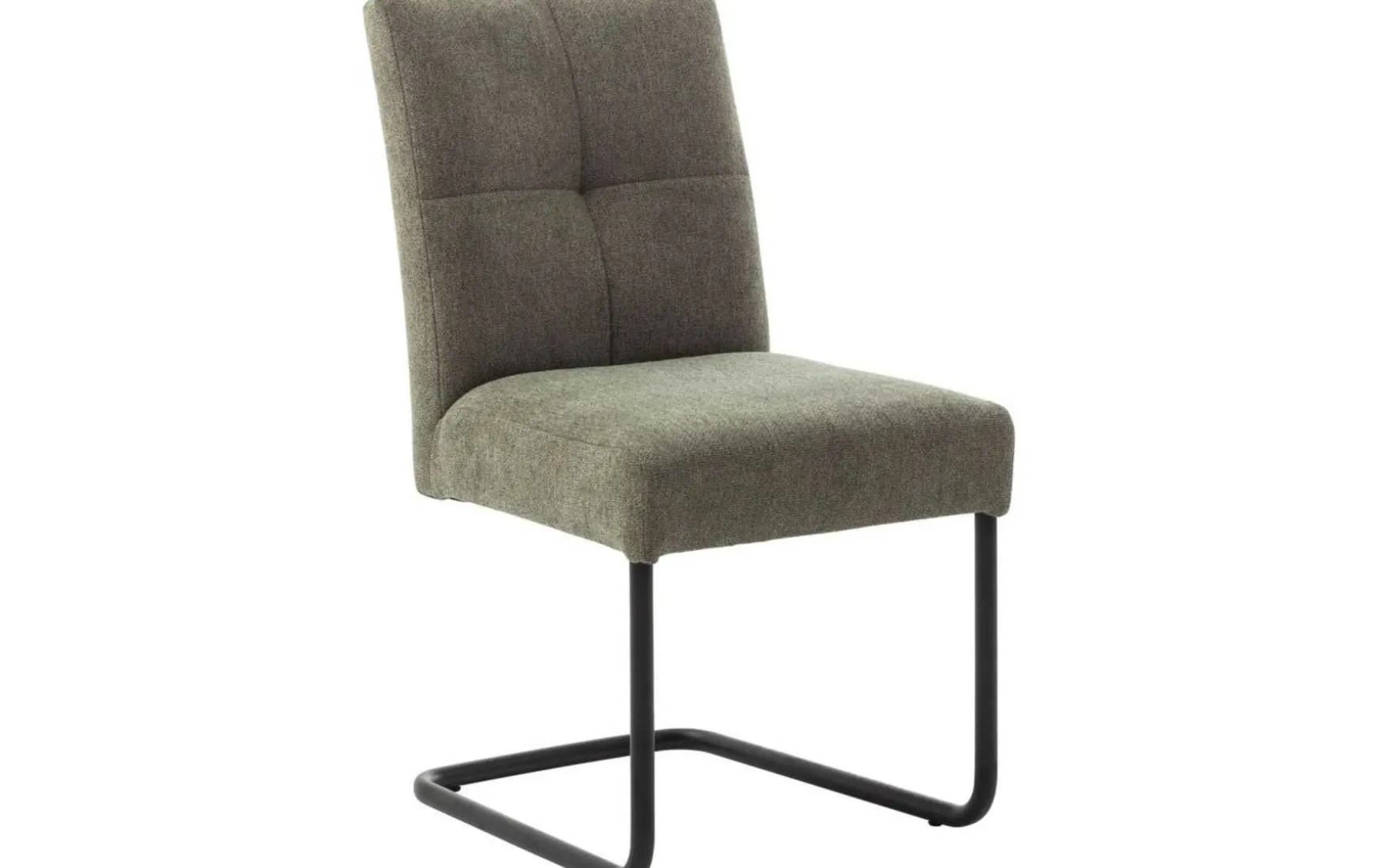 Dieser moderne Polsterstuhl überzeugt durch stilvolles Design und hohen Sitzkomfort. Der olivgrüne Stoffbezug verleiht dem Stuhl eine elegante, natürliche Ausstrahlung und setzt einen geschmackvollen Akzent im Ess- oder Wohnbereich. Das matt schwarz lackierte Metallgestell sorgt für einen stabilen Stand und bildet einen attraktiven Kontrast zum Stoffbezug. Die dekorative Kreuzsteppung im Rücken unterstreicht die hochwertige Optik, während der praktische Griff auf der Rückseite ein einfaches Verschieben des Stuhls ermöglicht. Mit seinen Maßen von ca. 50 x 91 x 49 cm (BxHxT) sowie einer Sitzhöhe von ca. 51 cm, einer Sitztiefe von ca. 41 cm und einer Sitzbreite von ca. 46 cm bietet der Polsterstuhl angenehmen Komfort für den täglichen Gebrauch.