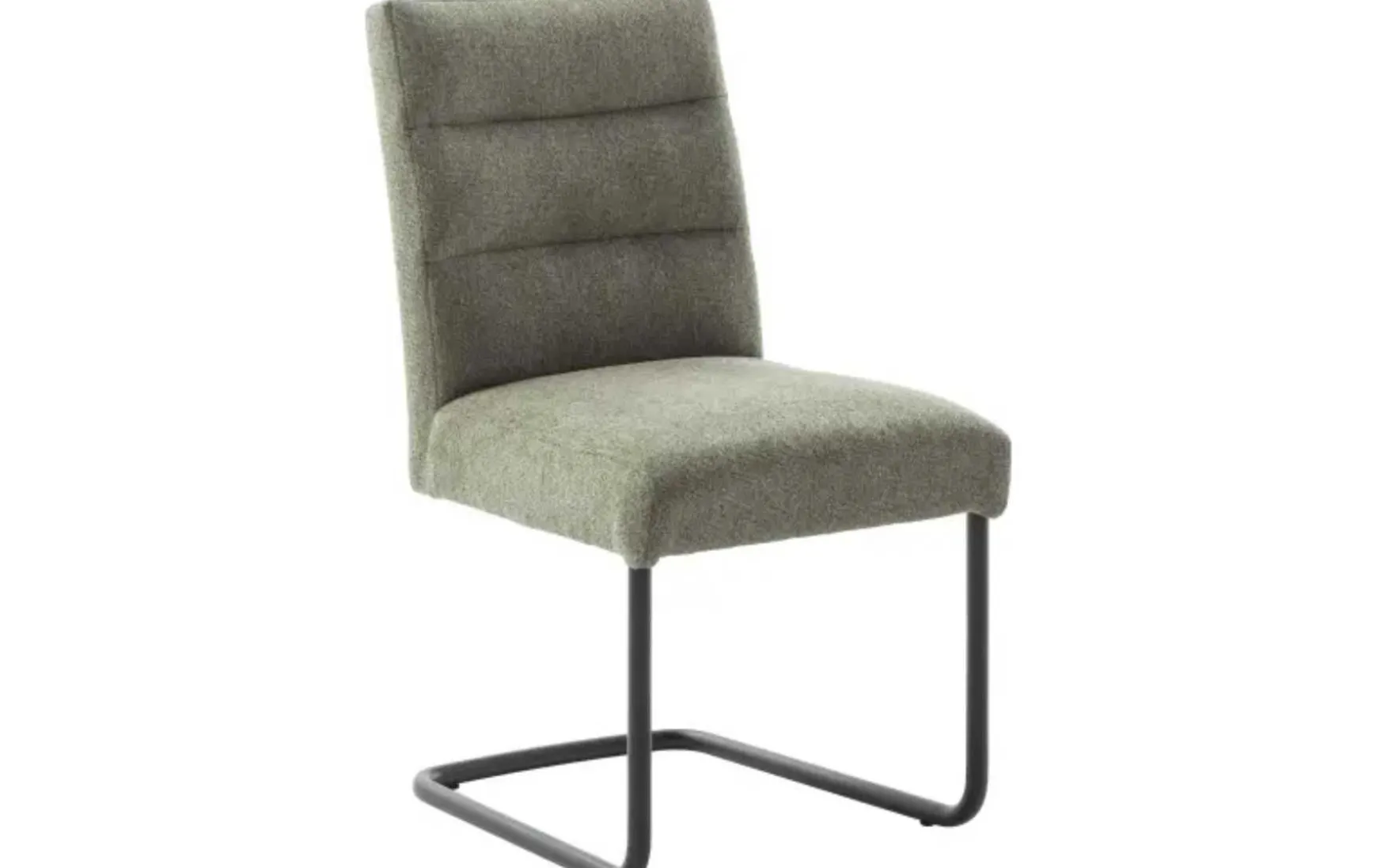 Dieser bequeme Polsterstuhl verbindet modernen Komfort mit stilvollem Design. Der Stoffbezug in Oliv verleiht dem Stuhl eine warme, zeitgemäße Ausstrahlung, während die elegante Kreuzsteppung für eine hochwertige Optik sorgt. Das schwarze Schwinggestell aus Metall unterstreicht den modernen Charakter und bietet gleichzeitig angenehme Flexibilität beim Sitzen. Ideal für Esszimmer, Wohnbereich oder Büro – ein komfortabler Blickfang für Ihr Zuhause.