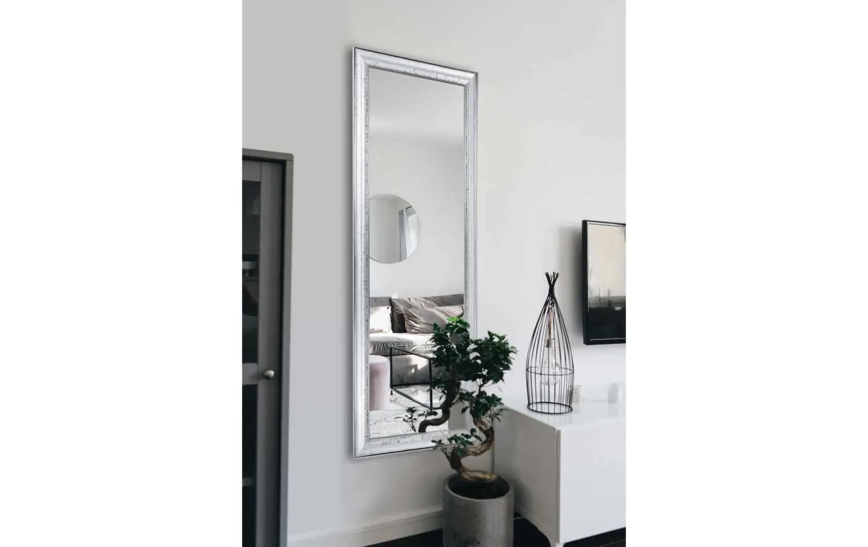 Durch seine horizontale und vertikale Montageoption kann der Spiegel flexibel über einer Kommode oder im Eingangsbereich angebracht werden.