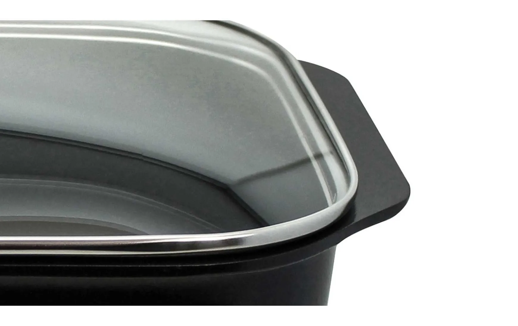 Dieser elegante Rechteckbräter mit Glasdeckel ist der ideale Küchenhelfer für anspruchsvolle Kochmomente. Dank der extra großen Brat- und Garfläche sowie der tiefen Form eignet er sich perfekt für Braten, Aufläufe und fettarmes Garen – ideal für gesellige Kochabende und Festessen. Die hochwertige, kratzfeste ELODUR® Edition Antihaftversiegelung sorgt dafür, dass nichts anhaftet und die Reinigung besonders leicht fällt. Der Glasdeckel mit stoßfestem Edelstahlrand und Aromaknopf ermöglicht gezieltes Dämpfen und bewahrt intensive Aromen. Eine gleichmäßige Wärmeverteilung bis zum Rand spart Zeit und Energie und garantiert beste Kochergebnisse.