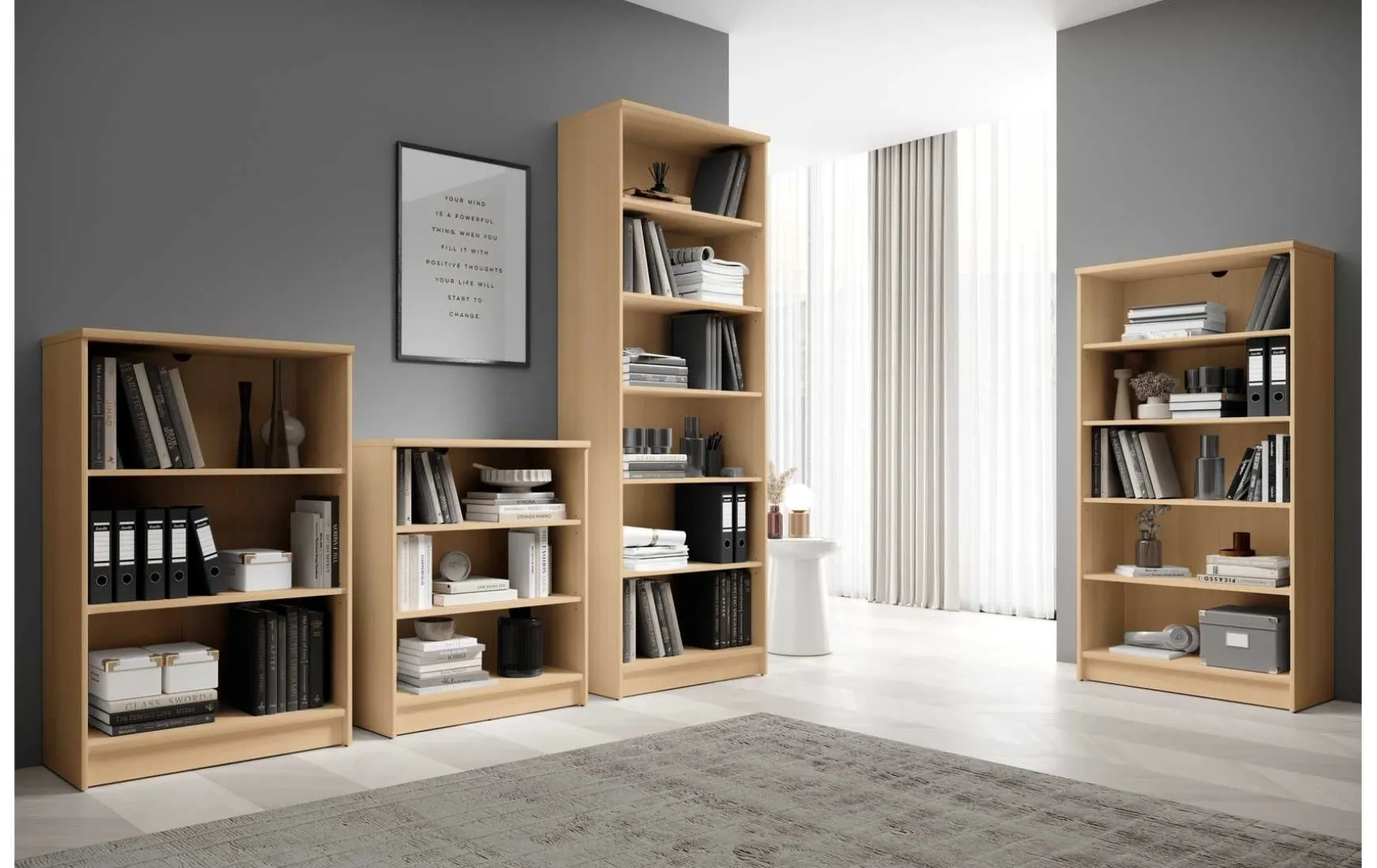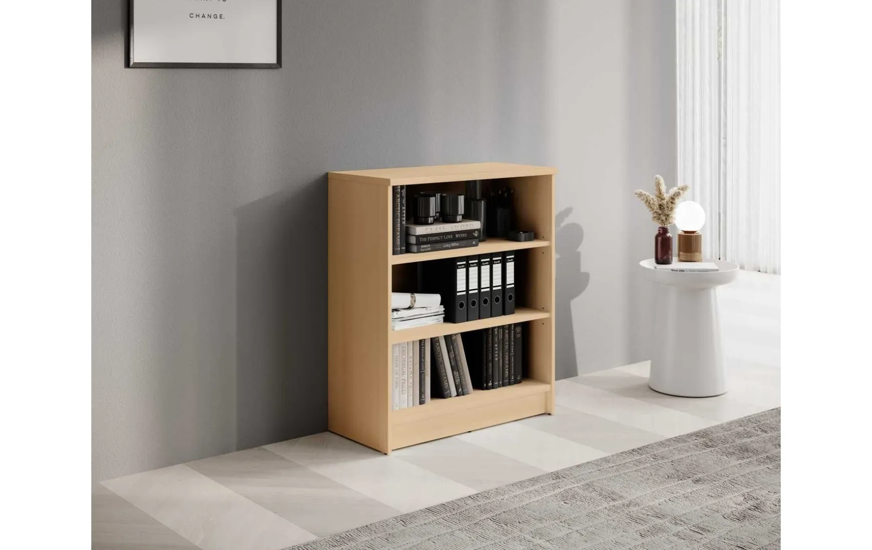 Das Regal in Buche Dekor überzeugt durch sein funktionales und modernes Design und passt ideal in Wohnzimmer, Büro oder Schlafzimmer. Der Korpus aus Holzwerkstoff mit Dekorfolie sorgt für eine pflegeleichte und robuste Oberfläche. Mit 3 offenen Fächern bietet das Regal praktischen Stauraum für Bücher, Ordner oder Dekoration. Dank seiner Maße von ca. 72 × 86 × 34 cm (B/H/T) ist es kompakt und vielseitig einsetzbar. Zur Reinigung genügt ein trockenes Staubtuch, auf lösungsmittelhaltige oder scheuernde Reinigungsmittel sollte verzichtet werden. Das Regal wird zerlegt geliefert, Dekoration ist nicht im Preis enthalten.