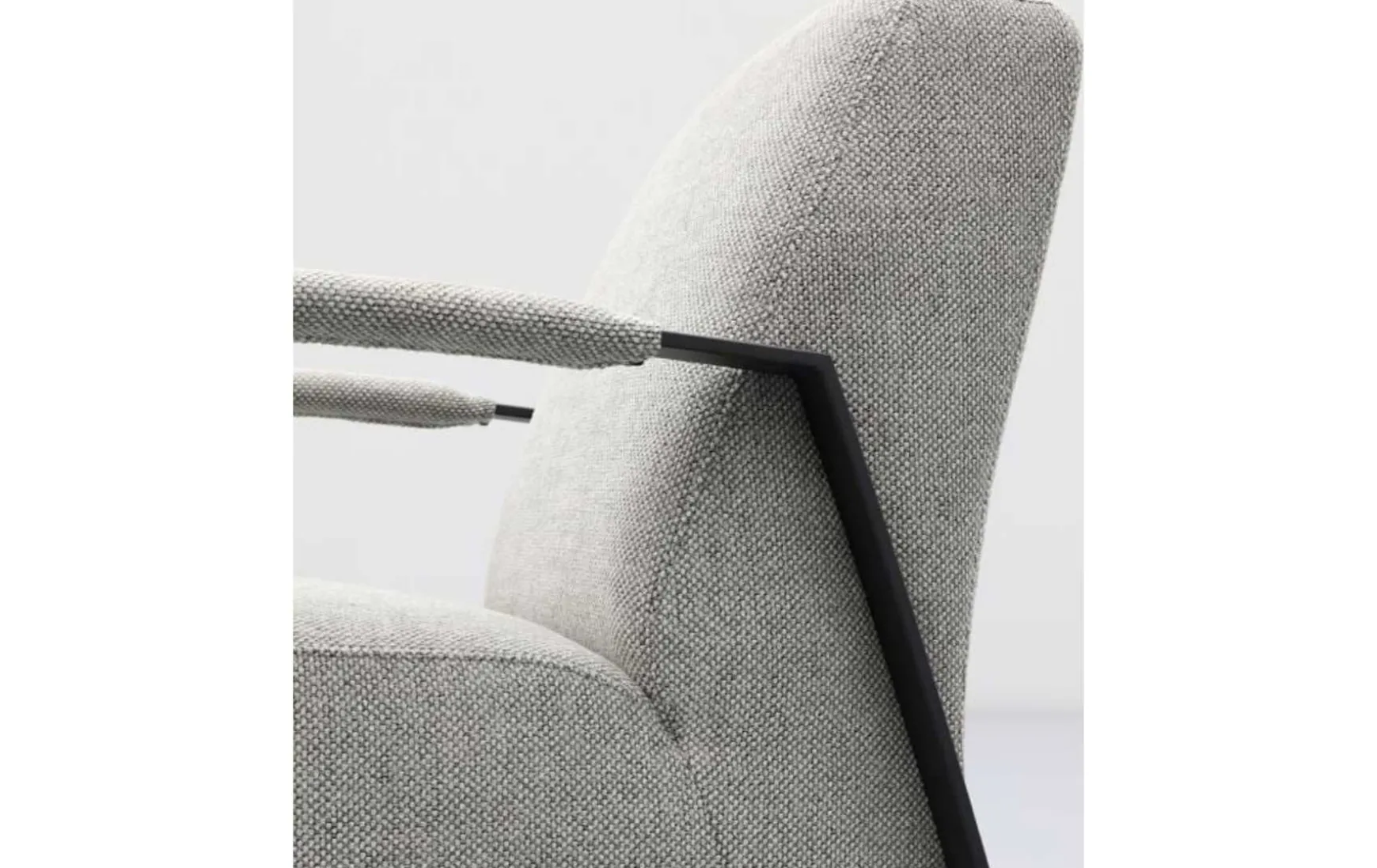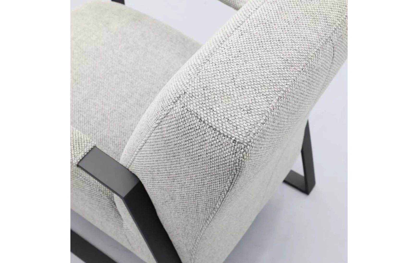 Ein luxuriöser Relaxsessel im Industriedesign mit stabilen Armlehnen aus 6 cm breitem schwarzem Stahl mit Stoffbezug. Zudem verleiht es dem Industriedesign eine schicke Note und bietet ein angenehmes Anlehngefühl. Auf diesem Relaxsessel wirst du mit Sicherheit bequem sitzen. Auf den Nosag-Federn liegt eine Kaltschaumschicht. Dies hat eine besonders lange Lebensdauer und sorgt dafür, dass du fest, aber bequem sitzt.