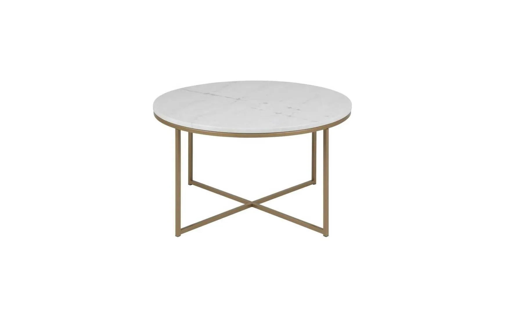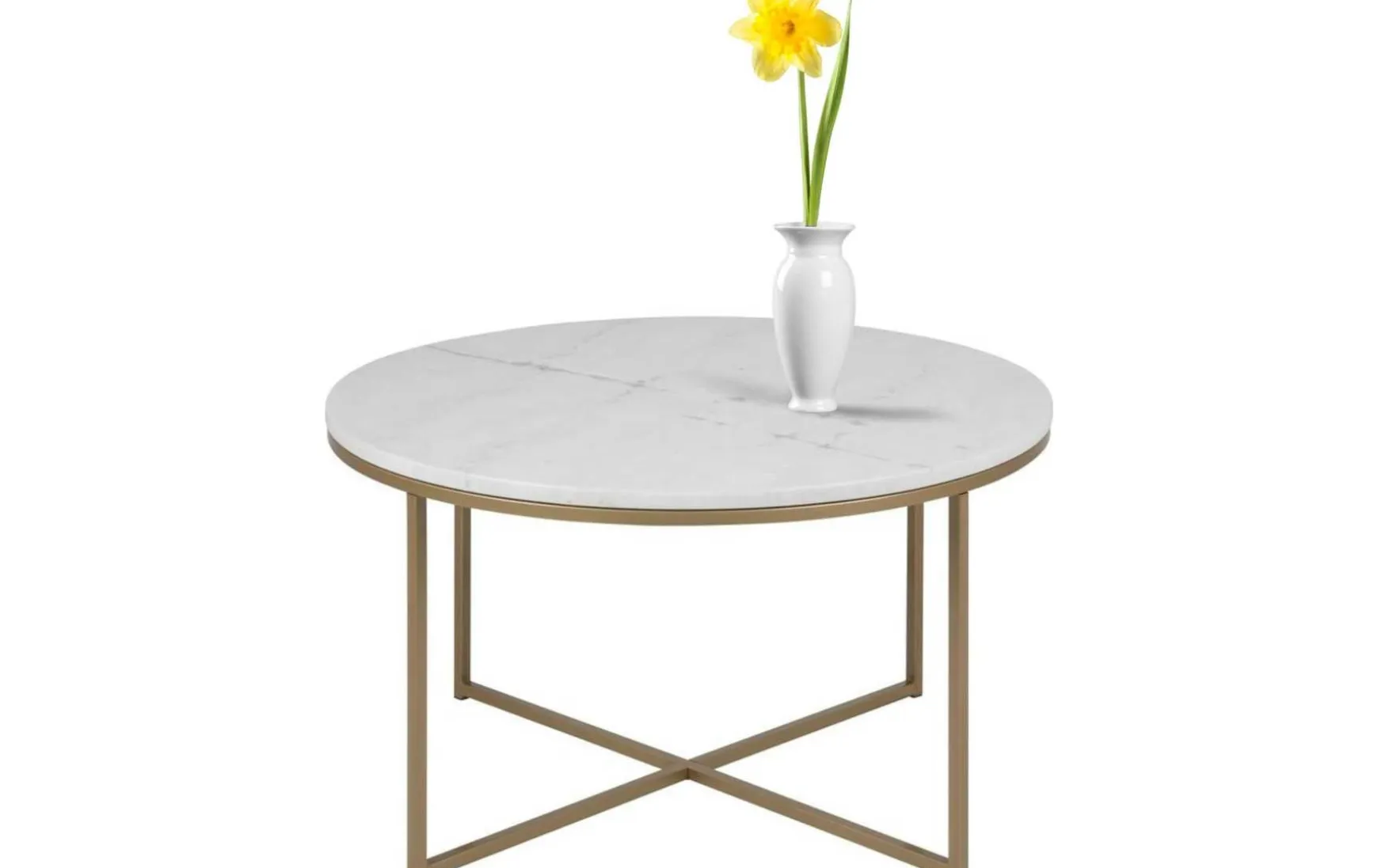 Dieser runde Couchtisch im modernen Stil ist ein eleganter Blickfang für jedes Wohnzimmer. Die hochwertige Marmor-Deckplatte in Weiß verleiht dem Tisch eine edle und zeitlose Ausstrahlung, während das goldfarbene Gestell aus Metall einen luxuriösen Akzent setzt. Durch seine harmonische, runde Form fügt sich der Couchtisch stilvoll in unterschiedliche Wohnkonzepte ein und bietet gleichzeitig eine stabile und langlebige Ablagefläche.