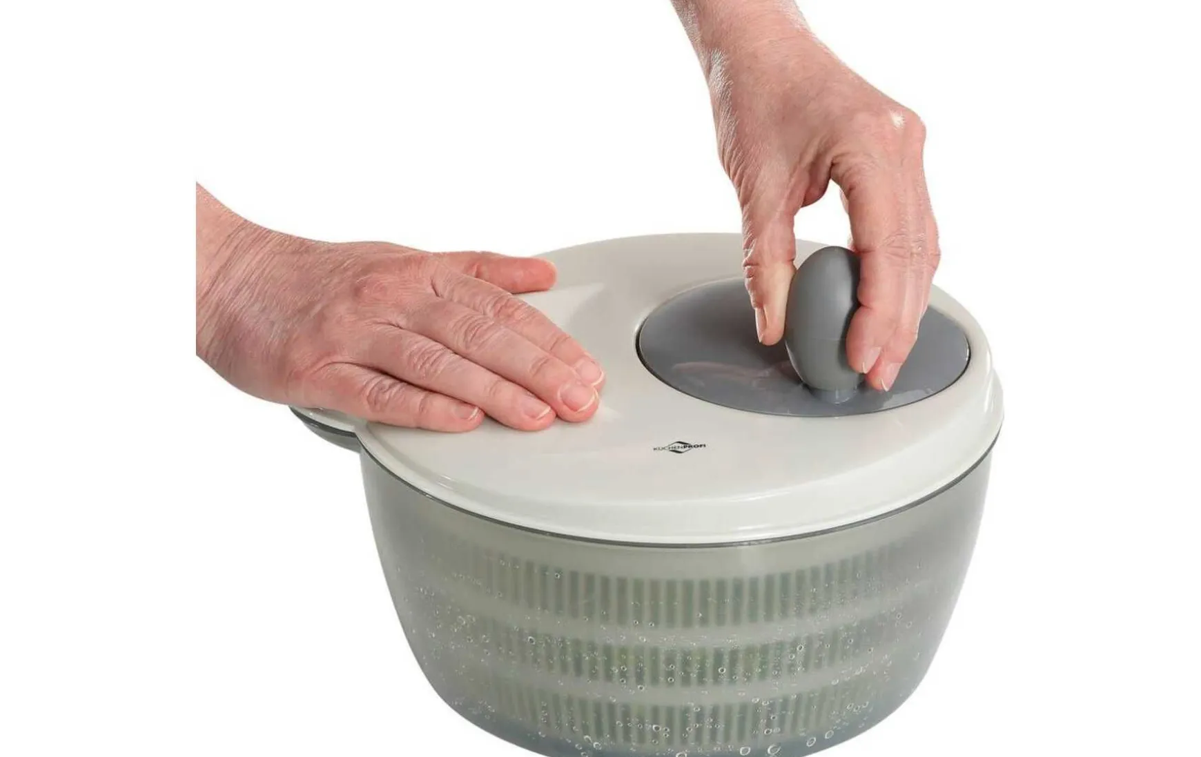 Eisbergsalat, Lollo Rosso oder Bianco: Mit dieser Salatschleuder sind die Blätter im Handumdrehen trocken! Bestehend aus: Schale, Locheinsatz und Deckel. Der Salatteller mit einfachem Kurbelmechanismus ist ein funktionaler Helfer, der in der Küche nicht fehlen sollte. Schüssel und Einsatz sind spülmaschinenfest.