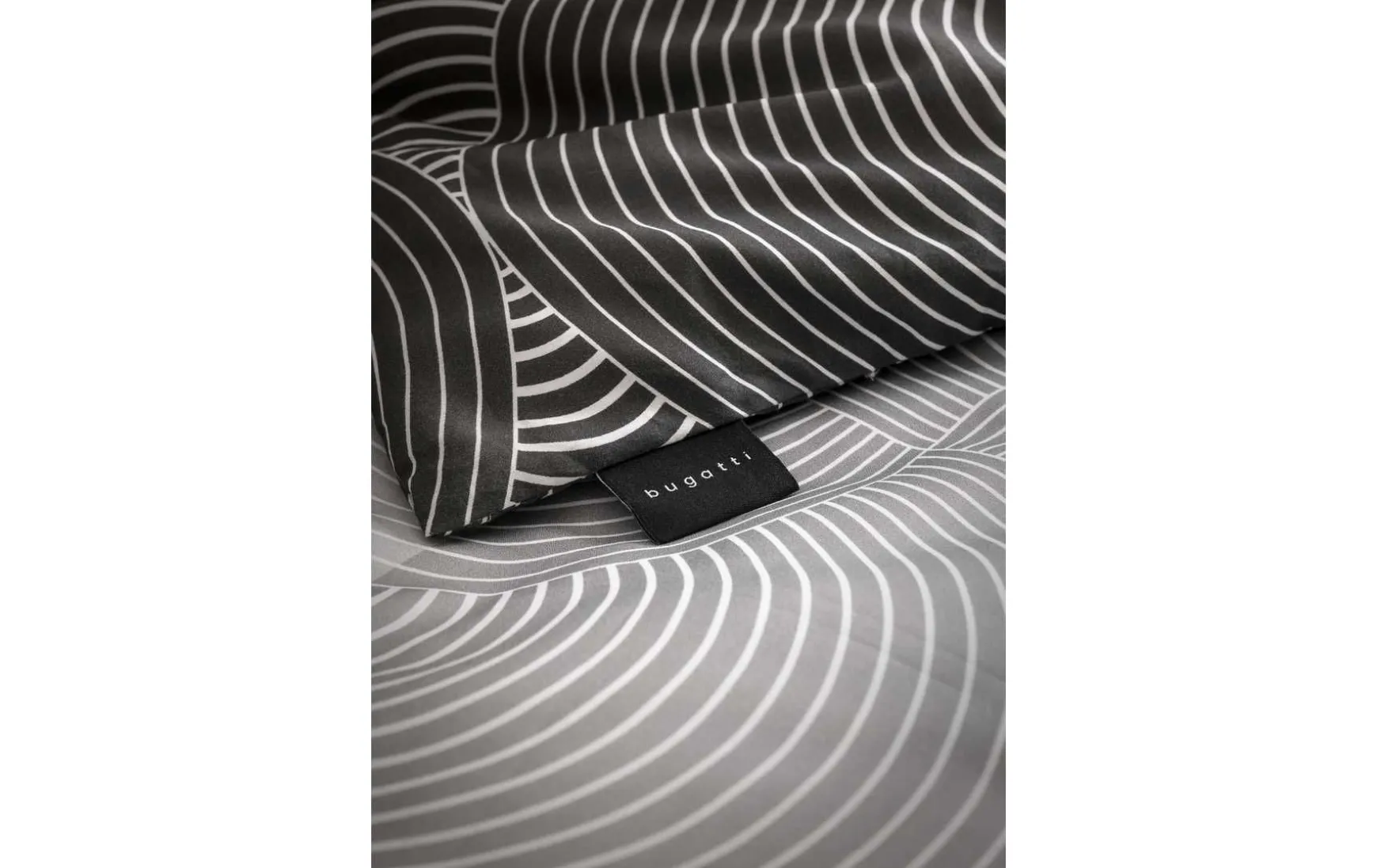 Diese Bettwäsche von Bugatti besticht durch die ruhige Wirkung des grafischen Designs.