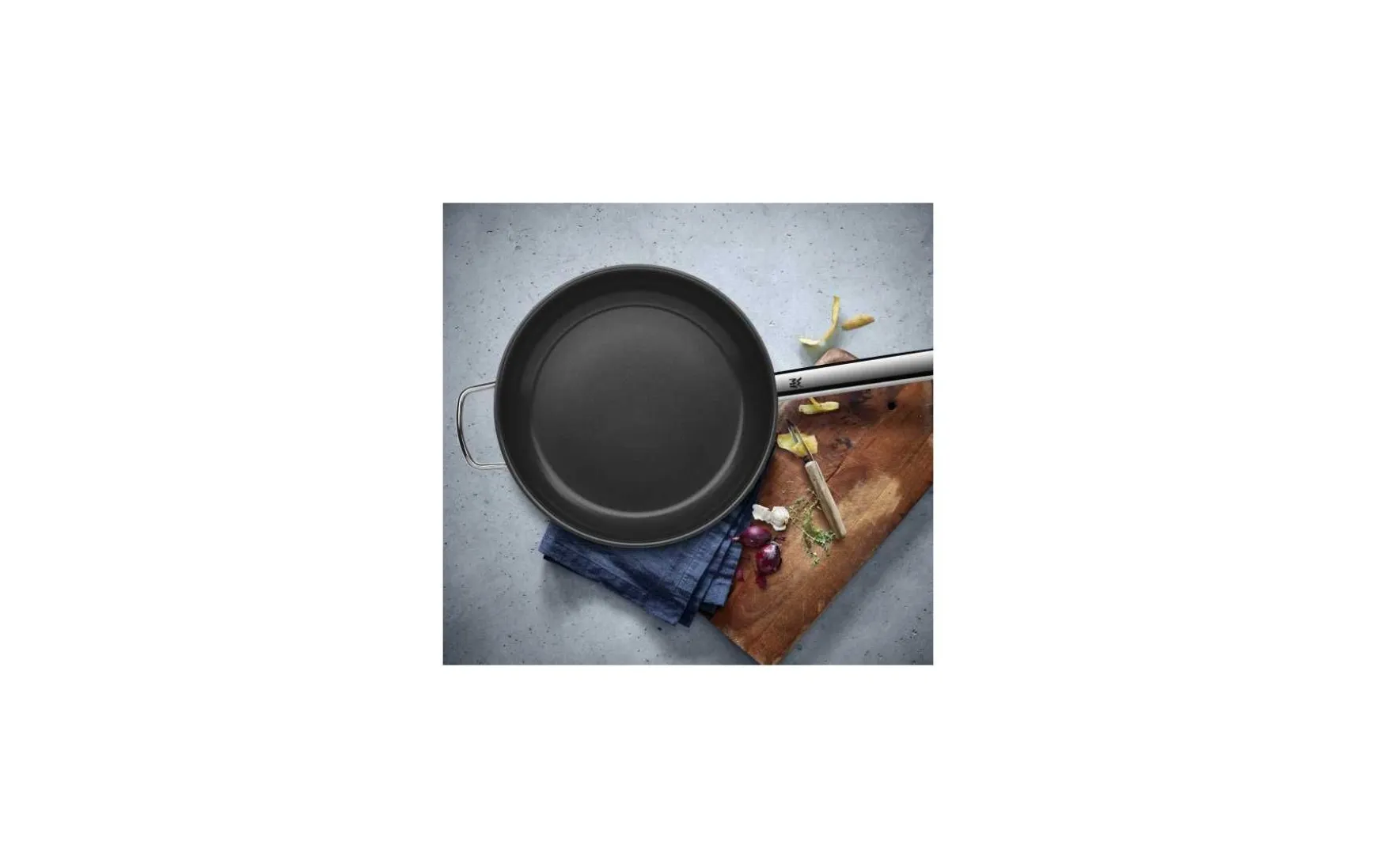Diese WMF Schmorpfanne mit 28 cm Durchmesser ist ein langlebiges Multitalent für jede Art der Zubereitung. Ob zarte Sautés oder scharf angebratene Pfannengerichte: Dank der robusten, bis zu 400 °C hitzebeständigen keramischen Antihaftversiegelung sind exzellente Bratergebnisse und eine einfache Reinigung ganz selbstverständlich. Gleichzeitig sorgt der TransTherm®-Allherdboden für eine optimale Wärmeverteilung und -speicherung, und spart so sehr effizient Energie.