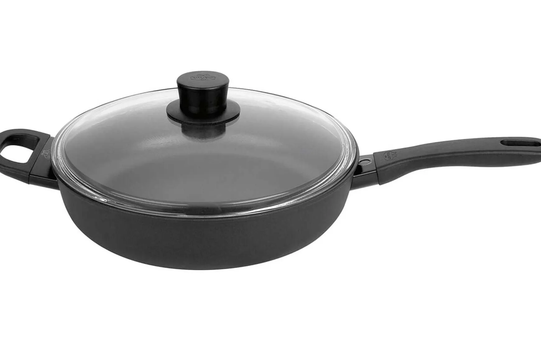 Diese Schmorpfanne mit Glasdeckel überzeugt durch ihre hochwertige und langlebige Antihaftbeschichtung. Der hohe Pfannenrand hilft beim scharfen anbraten, dann ermöglicht der Glasdeckel sanftes schmoren.