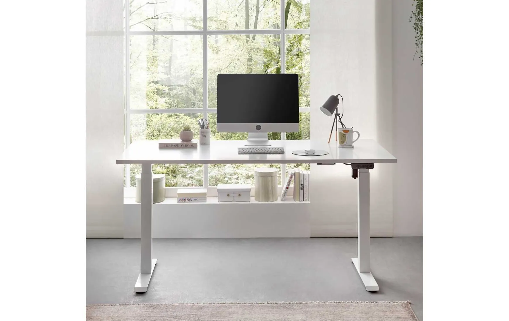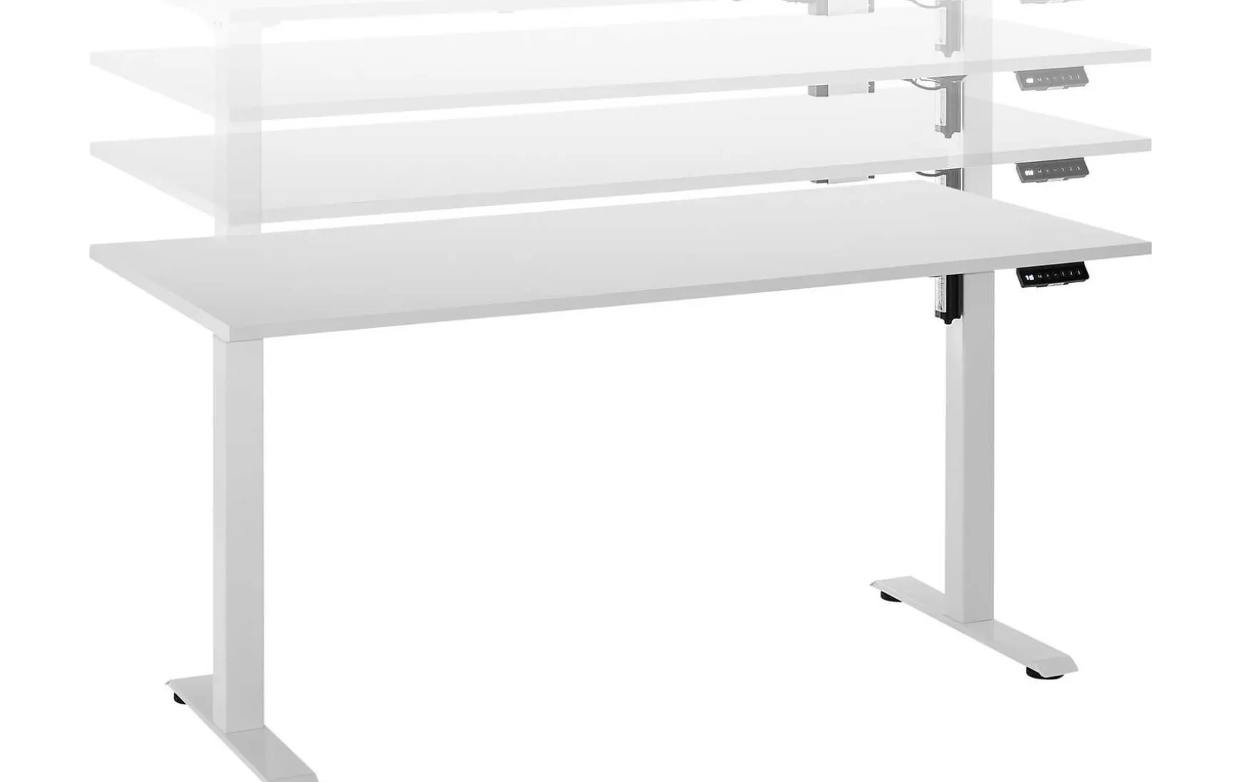 Der elektrisch höhenverstellbare Schreibtisch in Weiß kombiniert modernes Design mit ergonomischer Funktionalität und ist ideal für Büro oder Homeoffice. Die Höhe lässt sich stufenlos bis maximal ca. 117 cm anpassen, sodass sowohl Arbeiten im Sitzen als auch im Stehen möglich ist. Das stabile Metallgestell in Weiß, pulverbeschichtet, sorgt für sicheren Stand, während die weiße Tischplatte eine pflegeleichte und moderne Arbeitsfläche bietet.