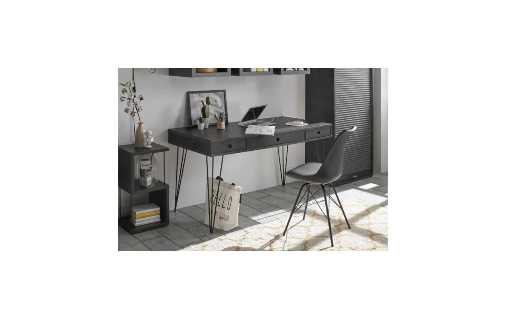 - Schreibtisch aus Flamed Wood Black
