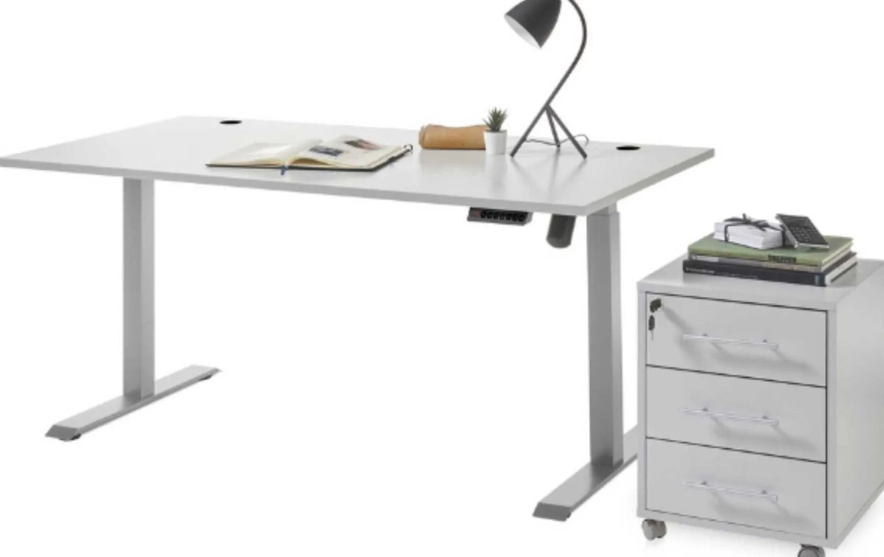 Der elektrisch höhenverstellbare Schreibtisch in Lichtgrau bietet eine flexible und ergonomische Arbeitslösung für Büro oder Homeoffice. Die Höhe lässt sich bequem per Knopfdruck verstellen und kann dank Memoryfunktion gespeichert werden, sodass bevorzugte Arbeitshöhen schnell wieder eingestellt werden können. Mit einer Größe von ca. 160 cm Länge und 80 cm Tiefe bietet der Schreibtisch viel Platz für Monitor, Laptop und Arbeitsmaterial. Die Höhe ist stufenlos zwischen ca. 71 und 119 cm einstellbar und ermöglicht sowohl komfortables Sitzen als auch Arbeiten im Stehen.