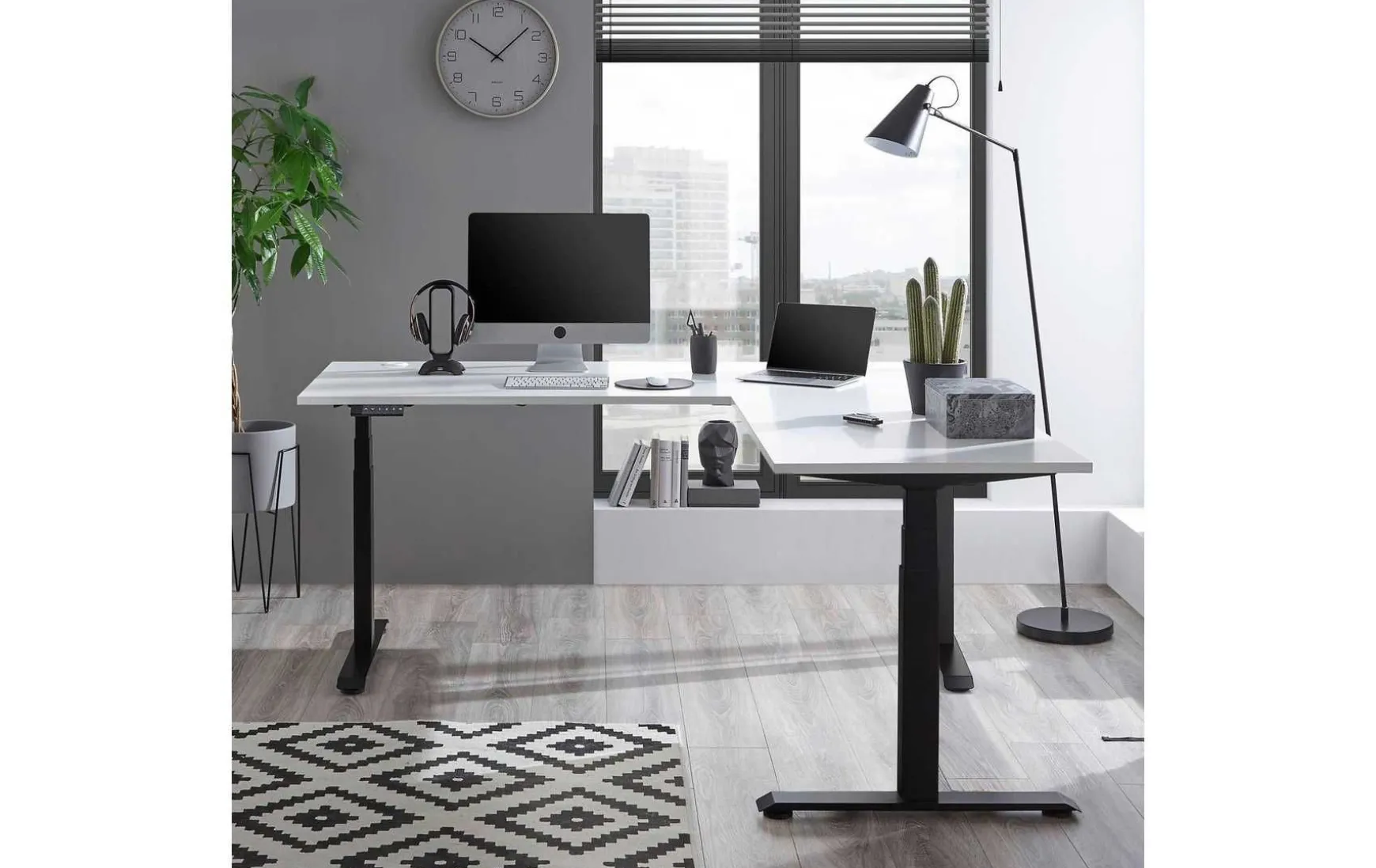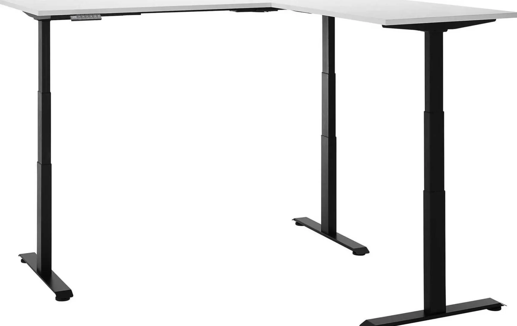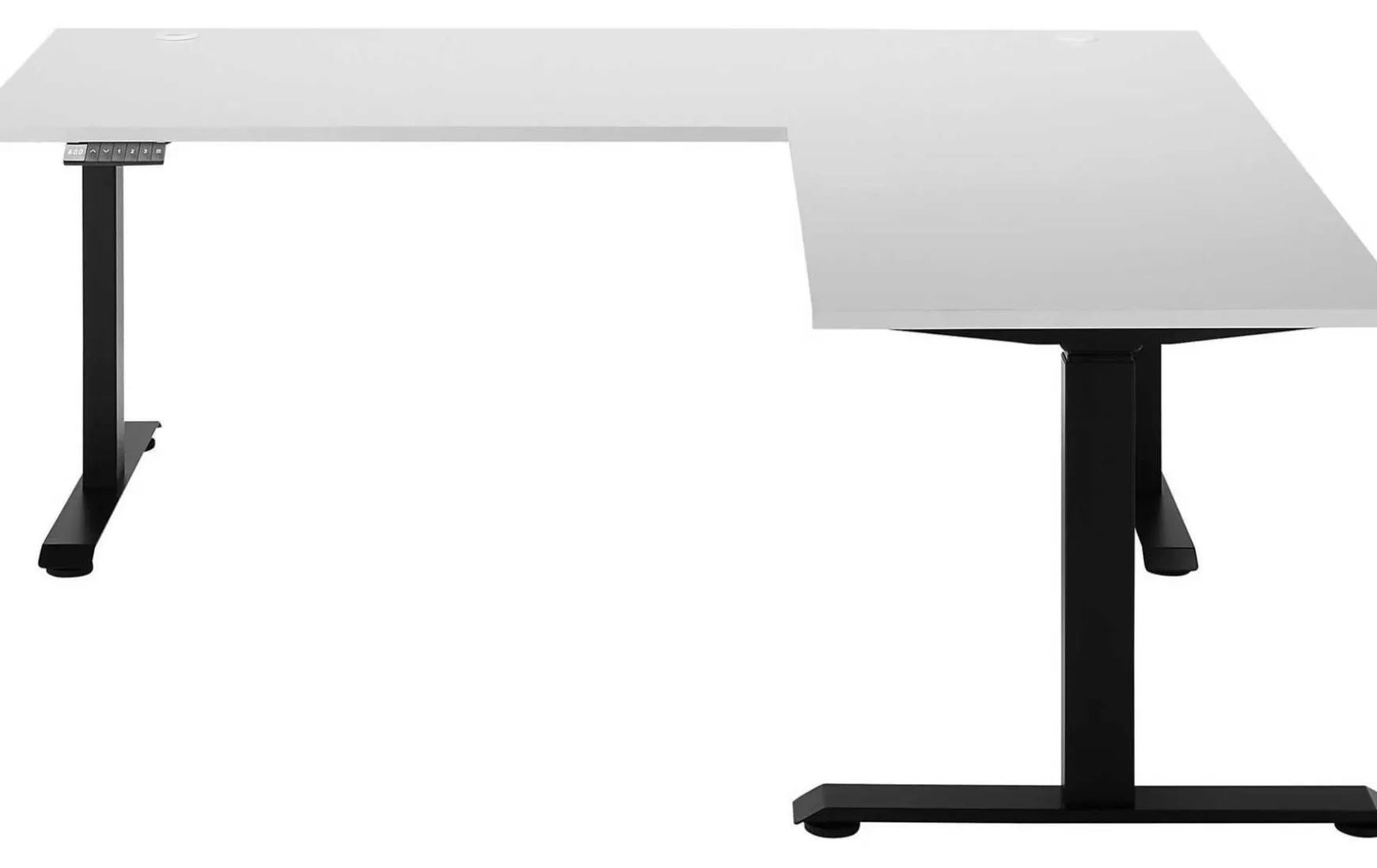 Elektrisch höhenverstellbarer Eck- Schreibtisch bietet reichlich Platz in puristischem Design. Stabiles Stahl-Metallgestell, pulverbeschichtet & damit besonders kratzfest. Mit 2 kabeldurchführungen auf der Tischplatte, Platte 1 BxT 180×77 cm, Platte 2 BxT 100×67 cm. Desk mit Digitaler Höhenanzeige und 4 Tasten Memory-Funktion: so können Sie Ihre bevorzugten Einstellungen für die Tischhöhe einfach anpassen und speichern.