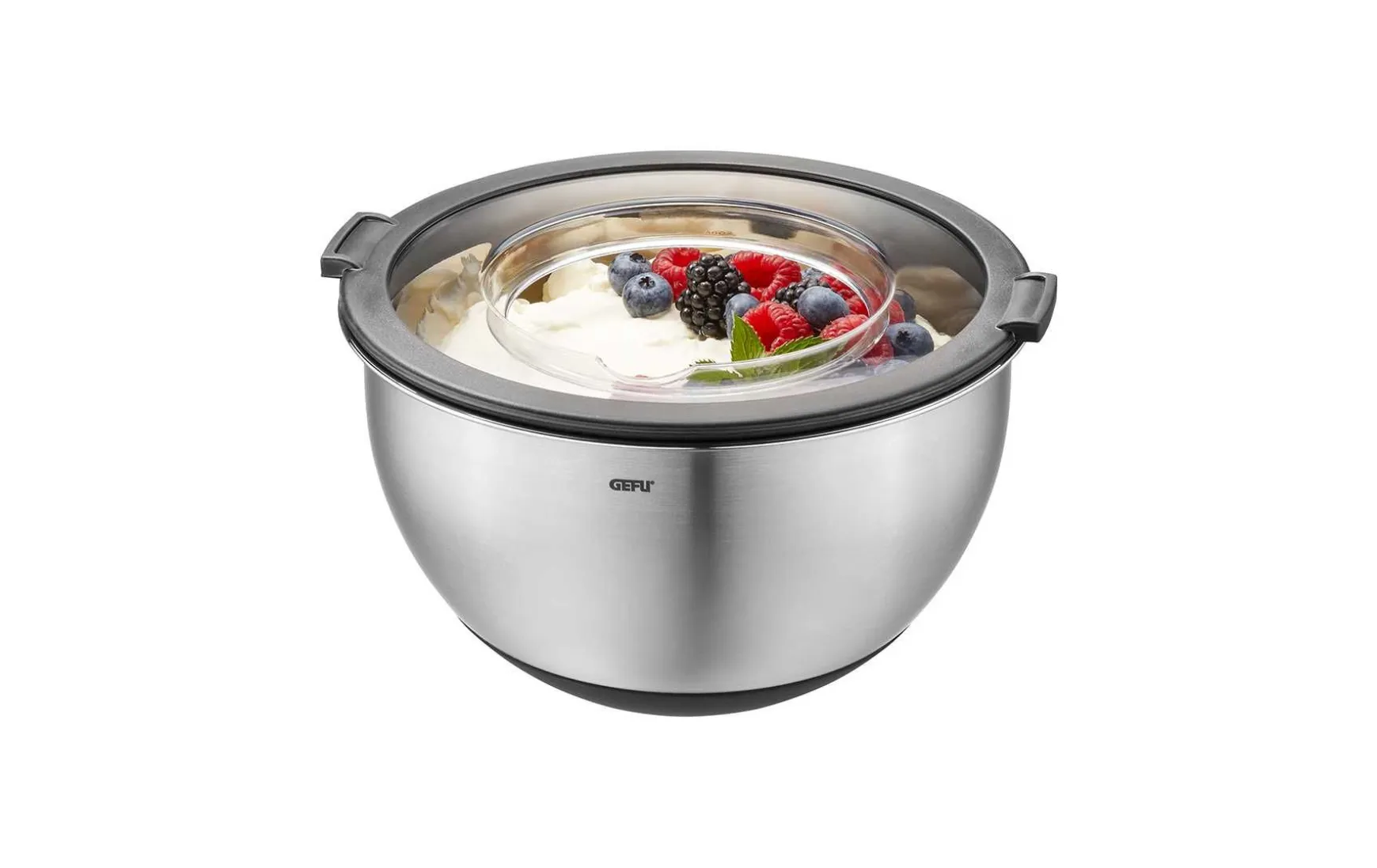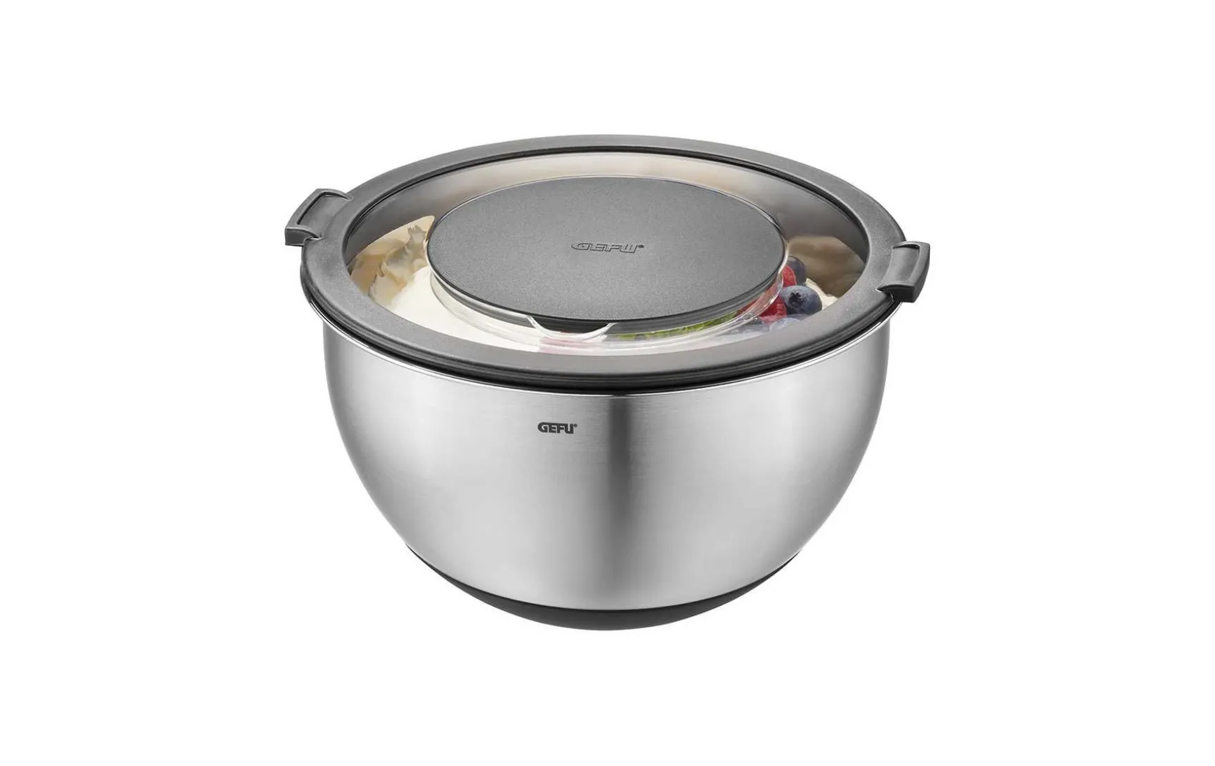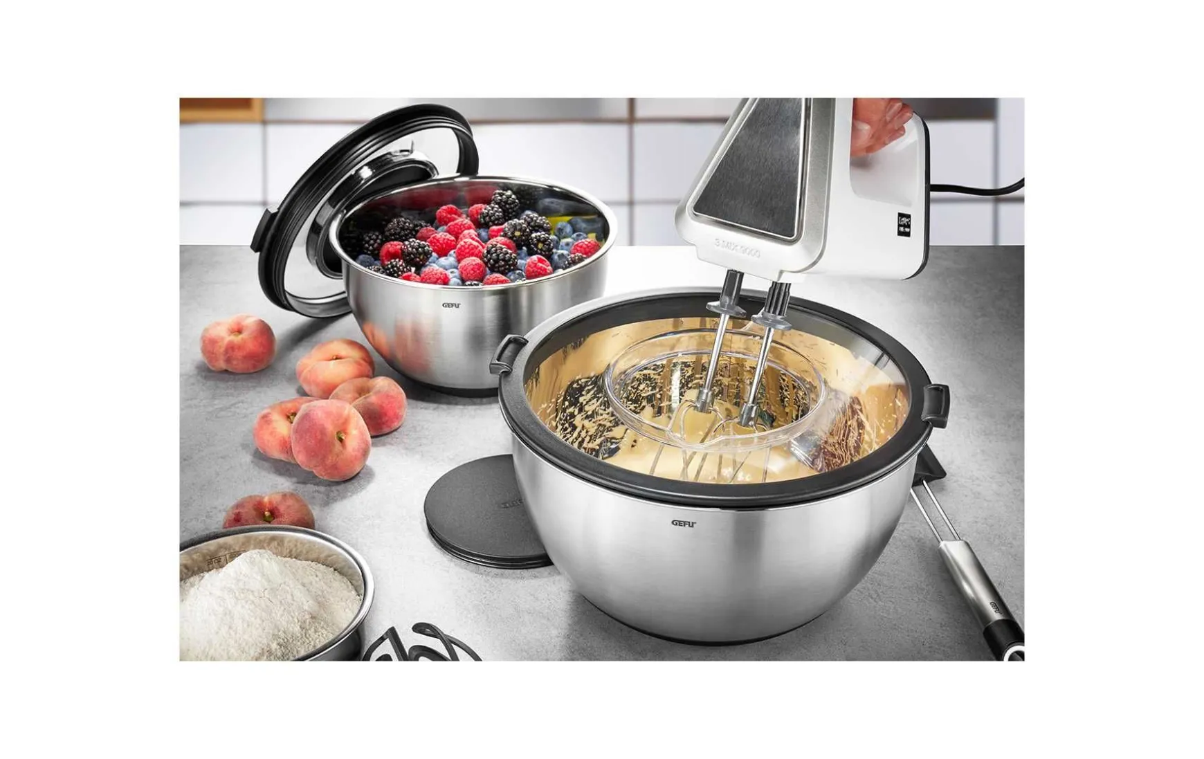 Die klassischen Edelstahlschüssel sind vielseitig einsetzbar und dank ihres Gummiteils am Boden rutschfest im Stand. Der innovative Spritzschutzdeckel verhindert, dass lässtige Spitzer von Dahne oder Teig auf Ihrer Arbeitsplatte landen. Die Schüssel eignen sich auch perfekt für die nächste Grillparty für Salate.