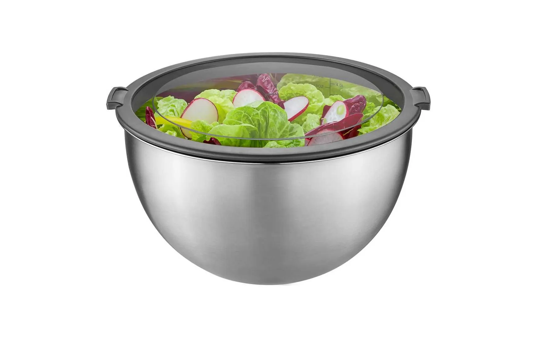 Dieses tolle Schüssel-Set besteht aus 3 Edelstahlschüsseln in unterschiedlichen Größen und ist vielseitig einsetzbar. Die jeweilig passenden Kunststoffdeckel ermöglichen zum einen immer eine freie Sicht auf den Inhalt und zum anderen sorgen sie dafür, dass der Inahlt länger frisch bleibt. Die innenliegende Skalierung hilft bei der Zubereitung verschiedenster Speisen. Erst zubereiten, dann servieren und den Rest aufbewahren.