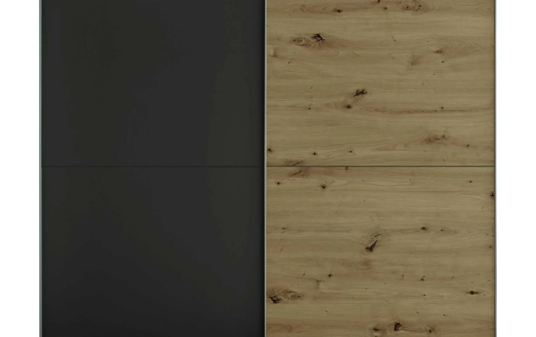 Dieser elegante Schwebetürenschrank kombiniert modernes Design mit natürlichem Charme: Die stilvolle Farbkombination aus Graphit und Artisan Eiche verleiht jedem Schlafzimmer eine warme, zeitlose Ausstrahlung. Mit seinen großzügigen Maßen von ca. B 270 × H 210 × T 60 cm bietet er reichlich Stauraum für Kleidung und Accessoires. Die praktische Hoteleinteilung im Inneren sorgt für eine strukturierte und übersichtliche Aufbewahrung – ideal für ein aufgeräumtes Wohngefühl.