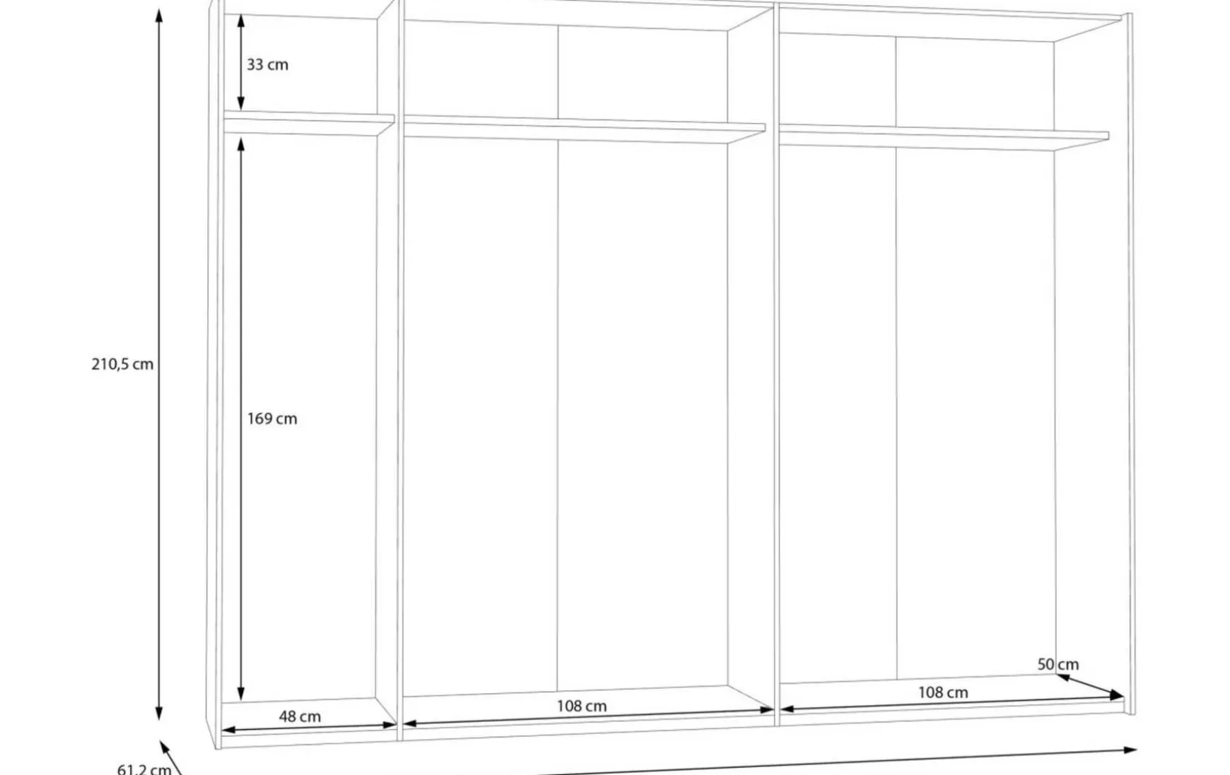 - Großzügiger Stauraum mit 3 Böden und 3 Kleiderstangen