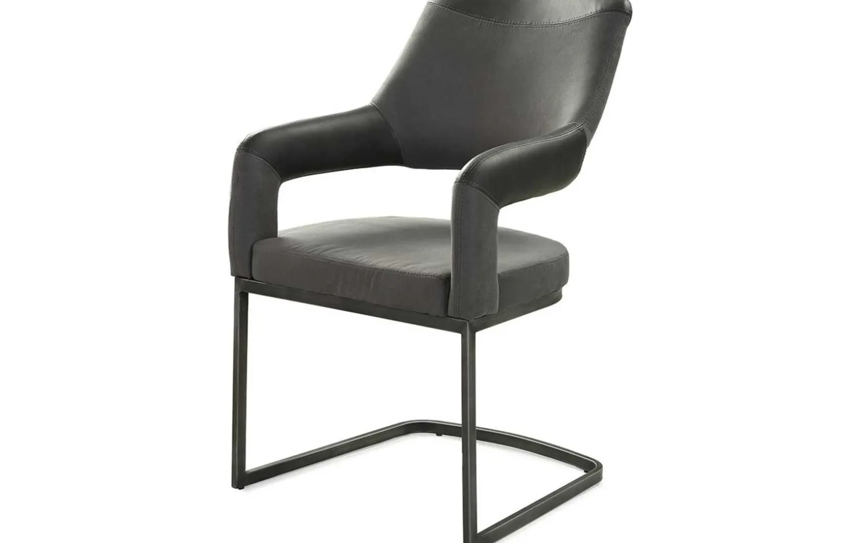 Der moderne Schwingstuhl mit Anthrazit farbenen Stoffbezug in Lederoptik zuammen mit seinem Schwinggestell machen jeden Essbereich modern.