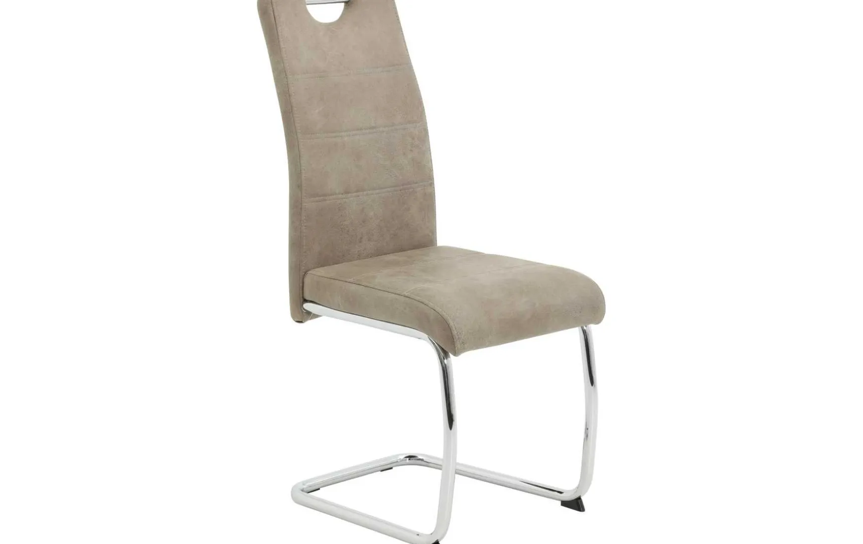Dieser Moderne Schwingstuhl in einem Microfaser Vintage Bezug bezaubert mit einem elegantem Rücken. Das Gestell, welches verchromt ist, Sorgt für ein stimmiges Erscheinungsbild.