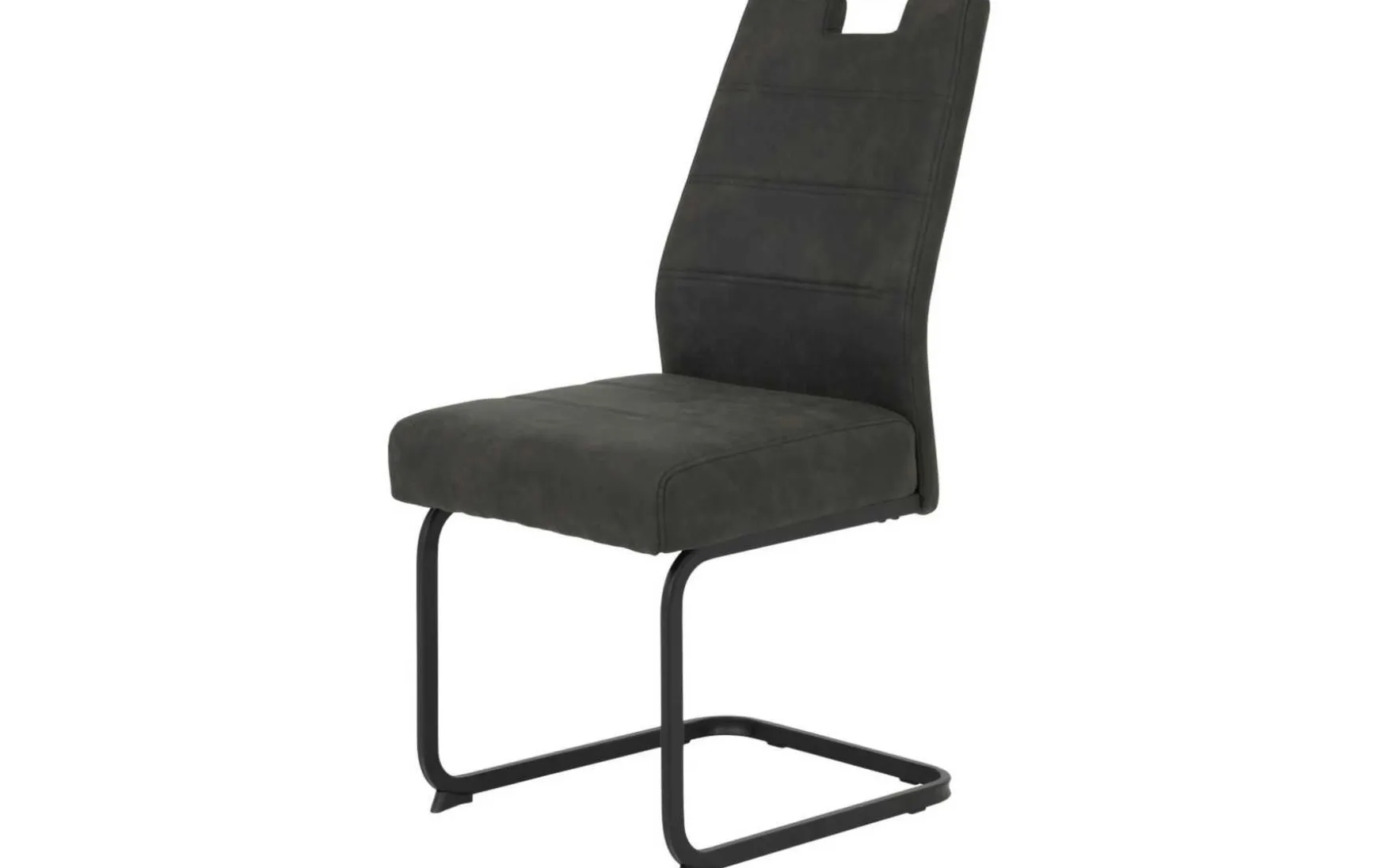- Anmerkungen: Schwingstuhl Bezug/Microfaser Anthrazit 46, Gestell/Vierkantrohr/pulverbeschichtet, Sitz und Rücken fest gepolstert, Rücken mit Steppnaht