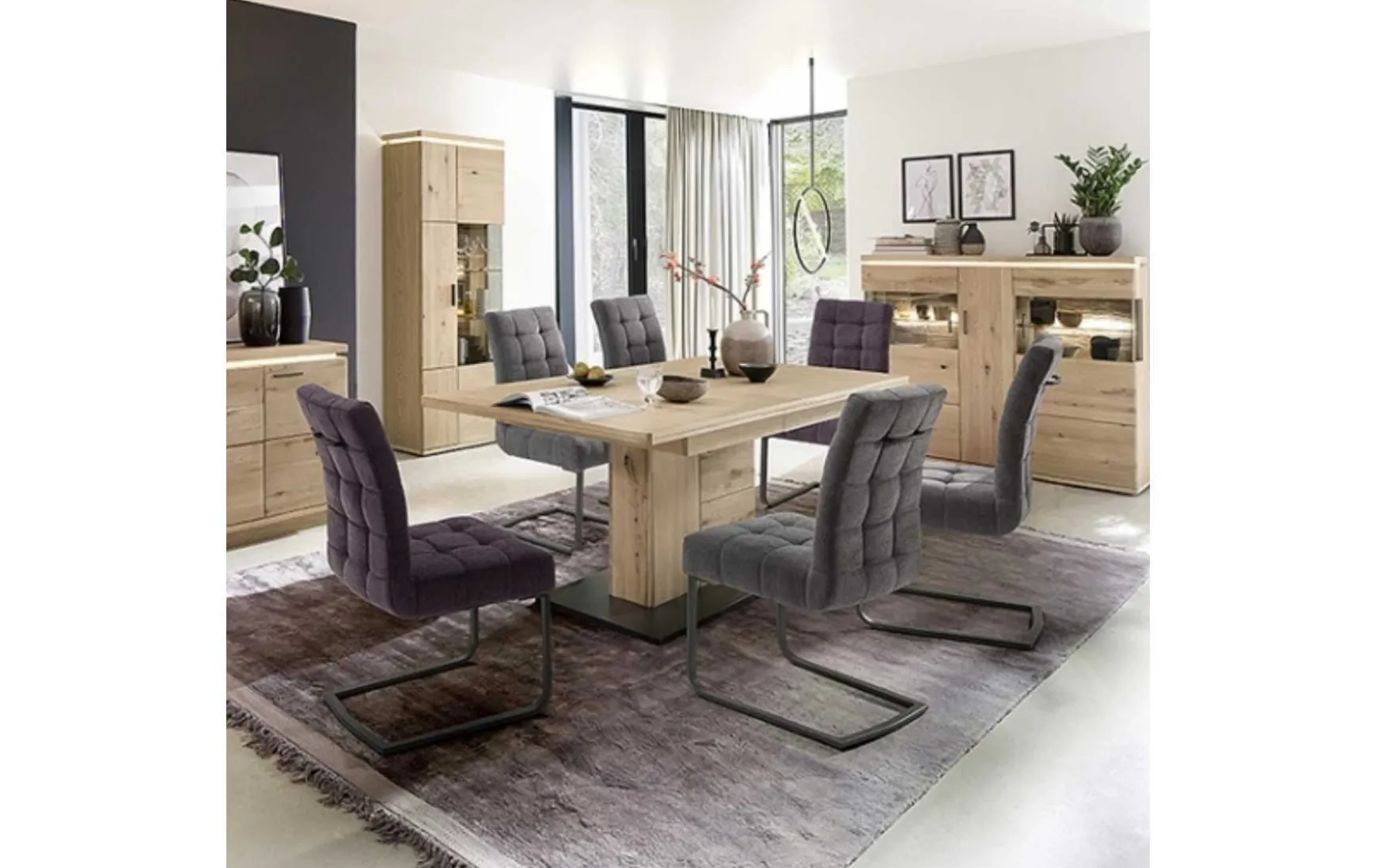 Extravagant und trotzdem bequem! Der Freischwinger bietet nicht nur hervorragenden Sitzkomfort, sondern auch ein ganz besonderes Design: Das kantige schwarze Metallgestell trägt eine fluffig gepolsterte Sitzschale, die ins besonders durch ihre Steppung auffällt. Ein feines Detail ist der am Rücken angebrachte Griff, mit welchem sich der Stuhl einfach und ohne Anschmutzgefahr verschieben lässt.