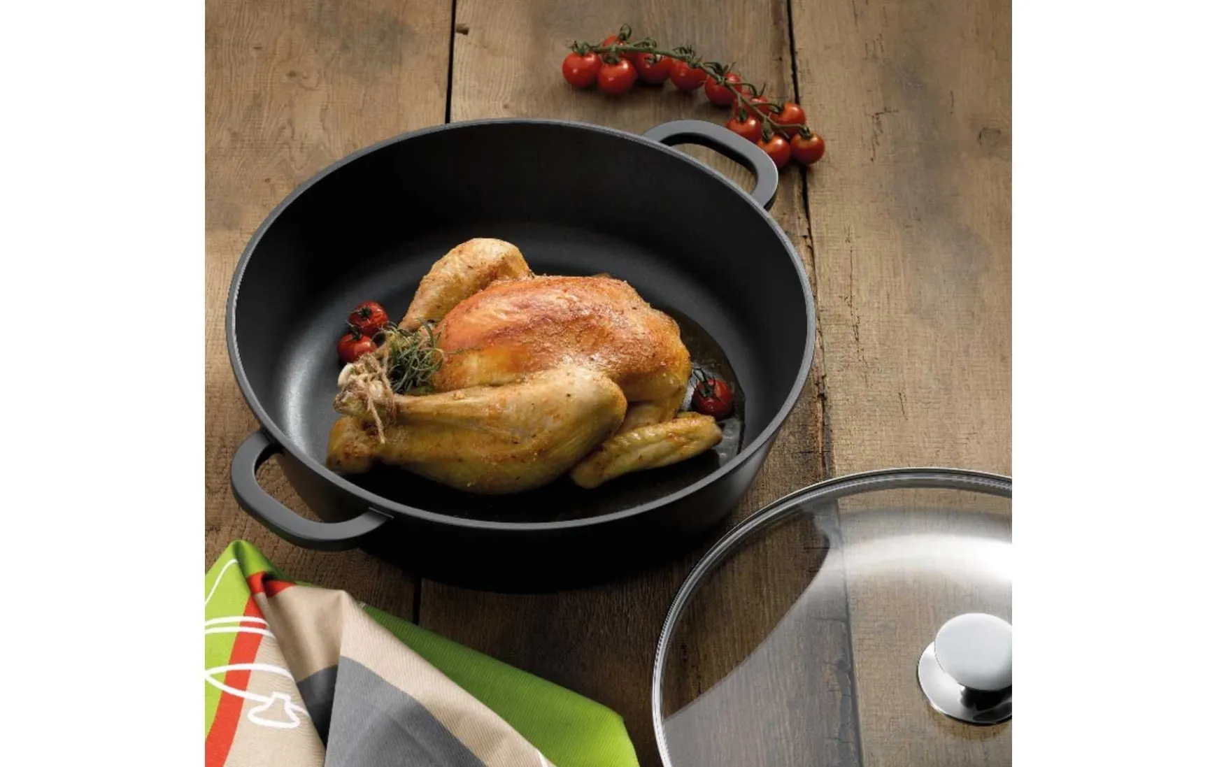 Die Servierpfanne ist aus einem robusten, 5 mm starkem Aluguss gefertigt, mit einer hochwertigen Antihaftbeschichtung veredelt und zusätzlich durch Keramikpartikel verstärkt. Qualität ist das Ergebnis intensiver Forschung und Entwicklung made in Germany, entwickelt für den Kontakt mit Lebensmitteln. Die Servierpfanne ist spülmaschinengeeignet. Wir empfehlen jedoch die Reinigung unter fließend heißem Wasser. Verwenden Sie zum Reinigen ein weiches Tuch, am besten kein Spülmittel. Danach mit einem Geschirrtuch abtrocknen. Diese Servierpfanne ist zudem für alle Herdarten geeignet und backofengeeignet bis 180° C, ohne Deckel sogar bis 220°C.